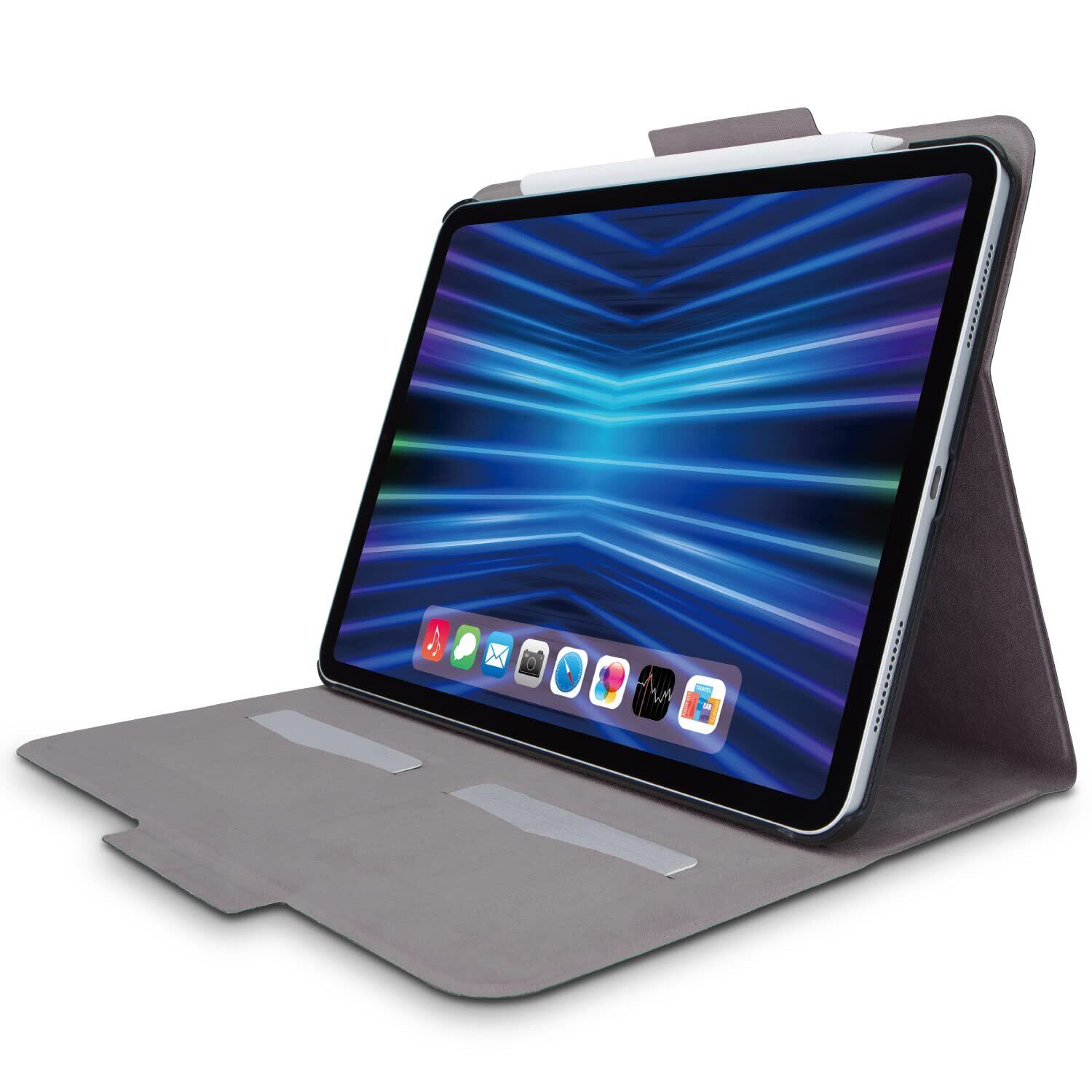 使いやすさを向上させた軽量スリムなiPad Pro 11インチ 第4世代(2022年モデル)、iPad Pro 11インチ 第3世代(2021年モデル)、iPad Pro 11インチ 第2世代(2020年モデル)用フラップケースです。機器本体のスリムなフォルムを損ねずに保護します。