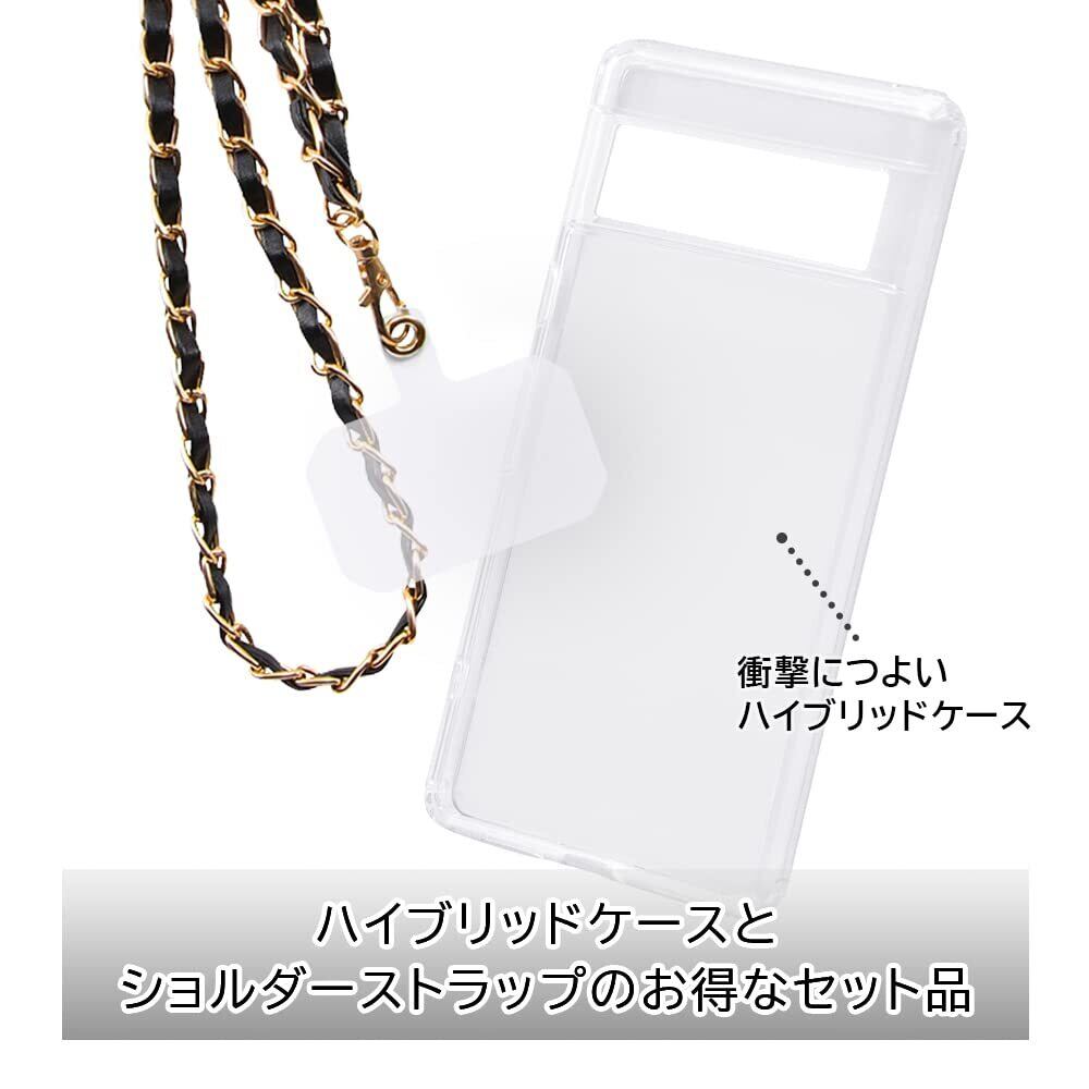 Google Pixel 7 ハイブリッドケース/クリア+ショルダーストラップ PUレザー チェーン/ブラック セット