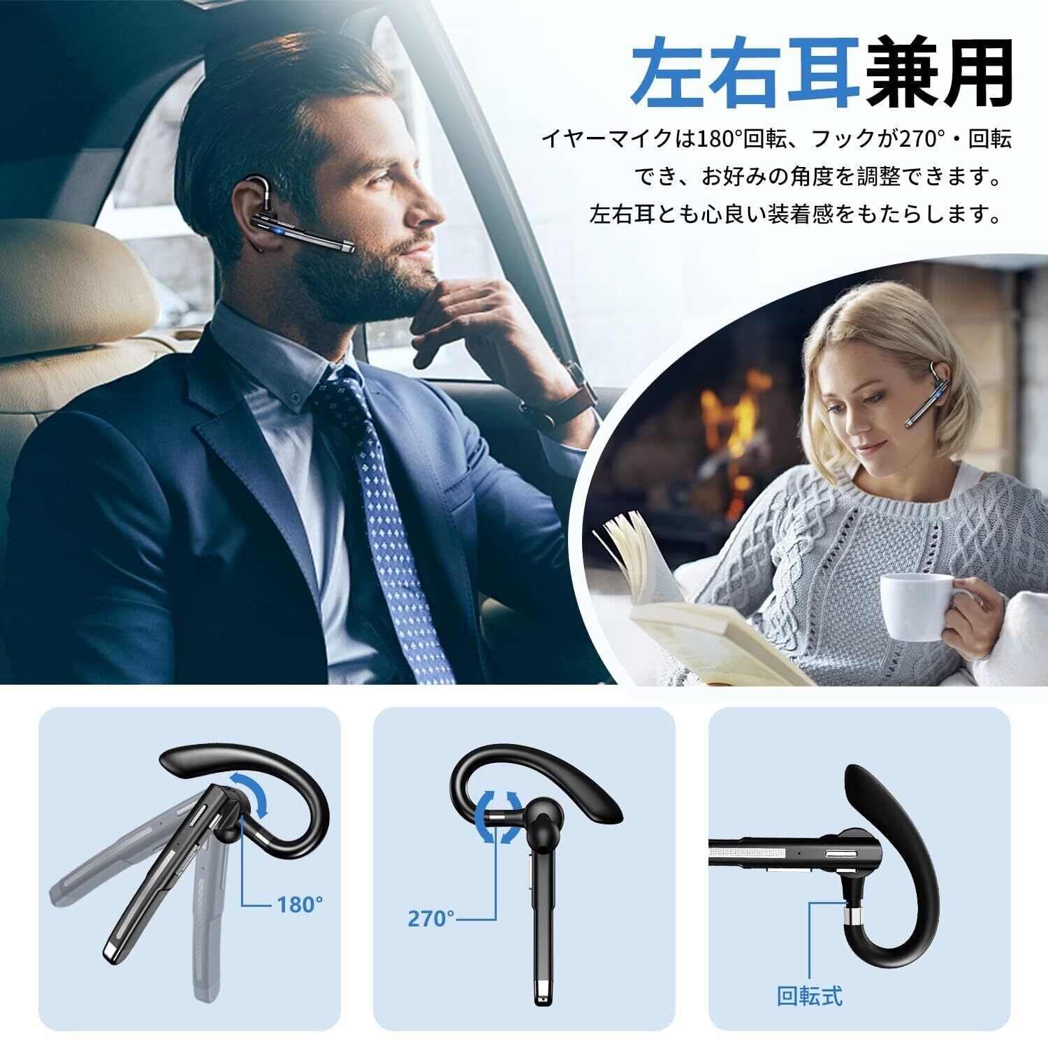 【2024新登場 Bluetoothヘッドセット】 Bluetooth5.3 イヤホン 片耳 100時間超長時間連続使用 ワイヤレス 耳掛け型 500mAh充電ケース付 LEDバッテリー残量ディスプレイ CVC8.0ノイズキャンセリング 左右耳兼用 装着感 ハンズフリー通話 マイク内蔵 ミュート/SIRI機能搭載 在宅勤務/運転/オンライン会議/ビジネスチャット用