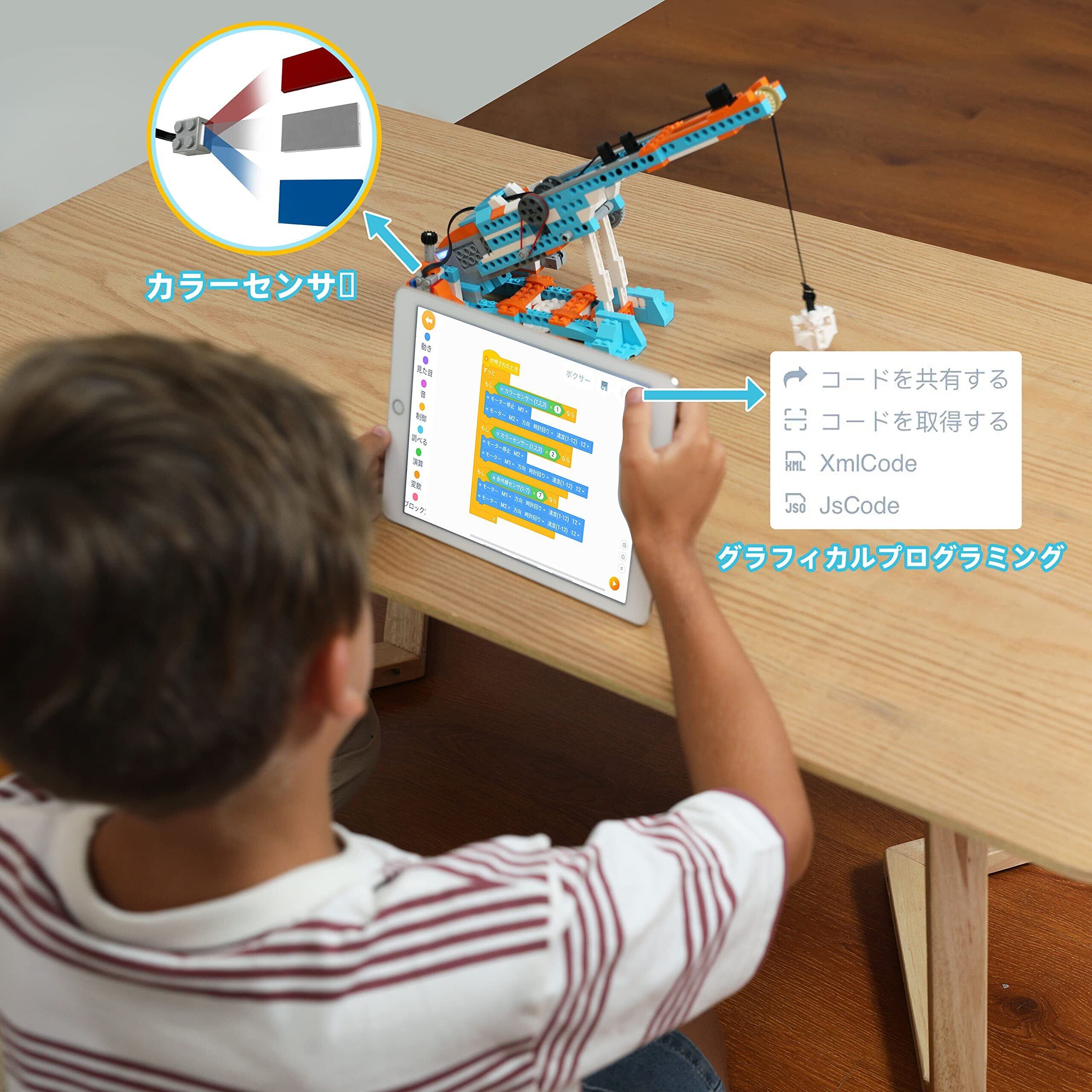 【中級プログラミングロボットキット】本製品にはブロック×389、モーター×2、赤外線センサー×1、カラーセンサー×1、LEDラント×2が含まれ、適切な組立難易度で、子供の創造力を高められます。多彩な機能が搭載される専属アプリApitor Kitを、スマホやタブレットでダウンロードできます。さらに、従来の制御方法と異なるジャイロ制御機能をアプリ内に追加しました。これにより、子供がより面白く操作ができ、同時に空間認識力も鍛えられます。