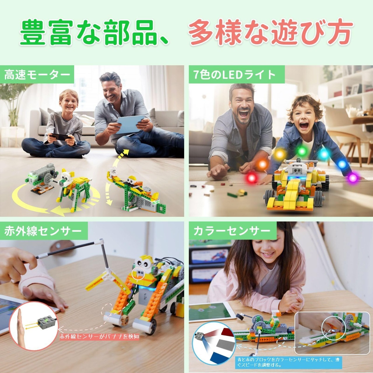 【最高の教育ロボット玩具】本製品は6歳以上のお子様を対象としております。弊社のほかのシリーズに比べて、ブロック数が少なく、組立難易度が大幅に軽減されました。STEM教育の教具としても使え、子供の能力向上に役立ちます。遊びにも学びにも良く、お子様がこのおもちゃに自分の興味にあったものを必ず見つけられます。お子様が難しいと感じた時、親も子供と一緒に遊び、助けてあげましょう。