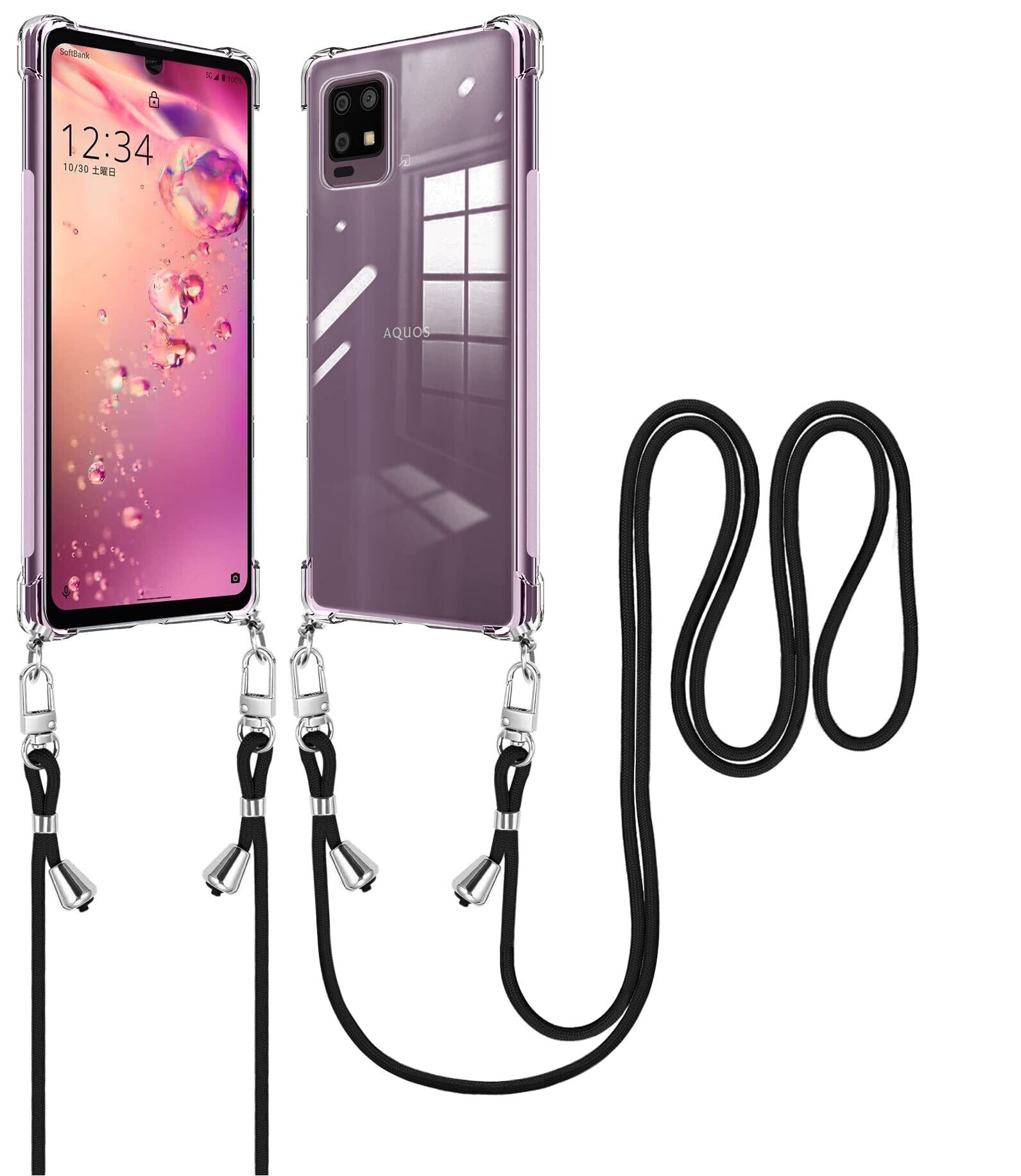 AQUOS Zero6 ケース ショルダー クリア SHG04 スマホケース SH-RM18 カバー ストラップ付き 肩掛け 斜めかけ シャープ ゼロ6 縄掛けケース TPU 薄型 軽量 取り外し可能 落下防止 【透明】