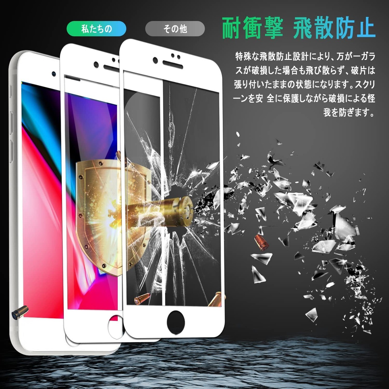 【2枚入り】iPhone8/iPhone7 ガラスフィルム 全面保護フィルム 【専用貼り付けガイド枠付き】日本製素材旭硝子製 硬度9H 貼り付け簡単 撥水撥油 気泡防止 自動吸着 指紋防止 飛散防止 iPhone8/iPhone7 液晶強化ガラス