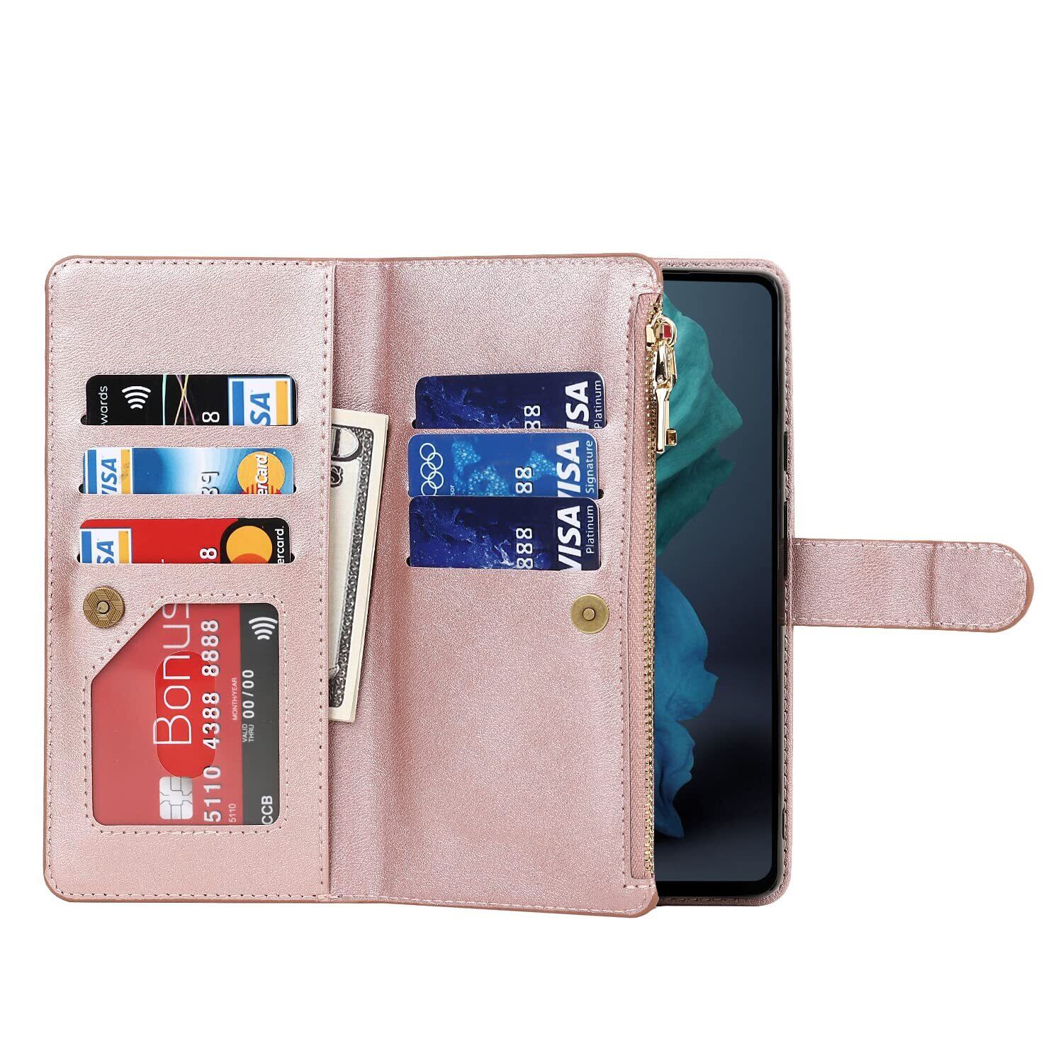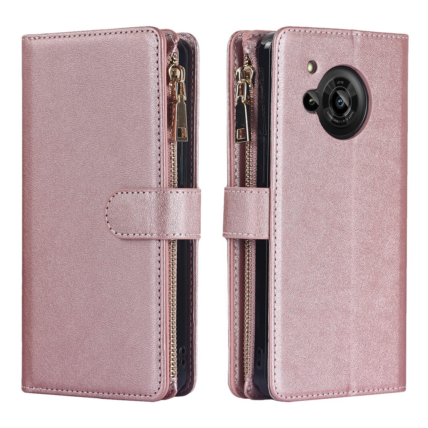 Pelanty for SHARP AQUOS R7 縄掛けケース手帳型 SH-52C 携帯カバー 肩掛け斜めがけ ショルダー 合成皮革+TPU マグネット aquos r7 財布型カバー ICカード お札入れ小銭入れ大容量 収納ポケット スタンド機能 シャープ アクオスR7 ストラップ付き 落下防止 耐衝撃 全面保護(肩縄付き-ローズゴールド)