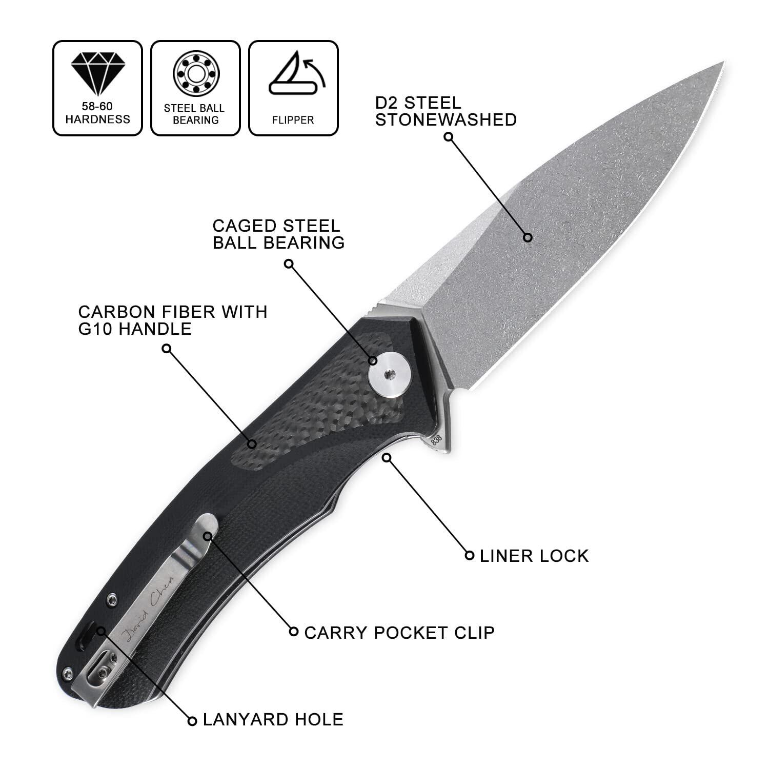Petrified fish PF838 折りたたみナイフ3.74インチD 2サテンブレードスチールG 10ハンドルEDCアウトドアキャンプ用ポケット折りたたみナイフ (Carbon Fiber Stonewashed)