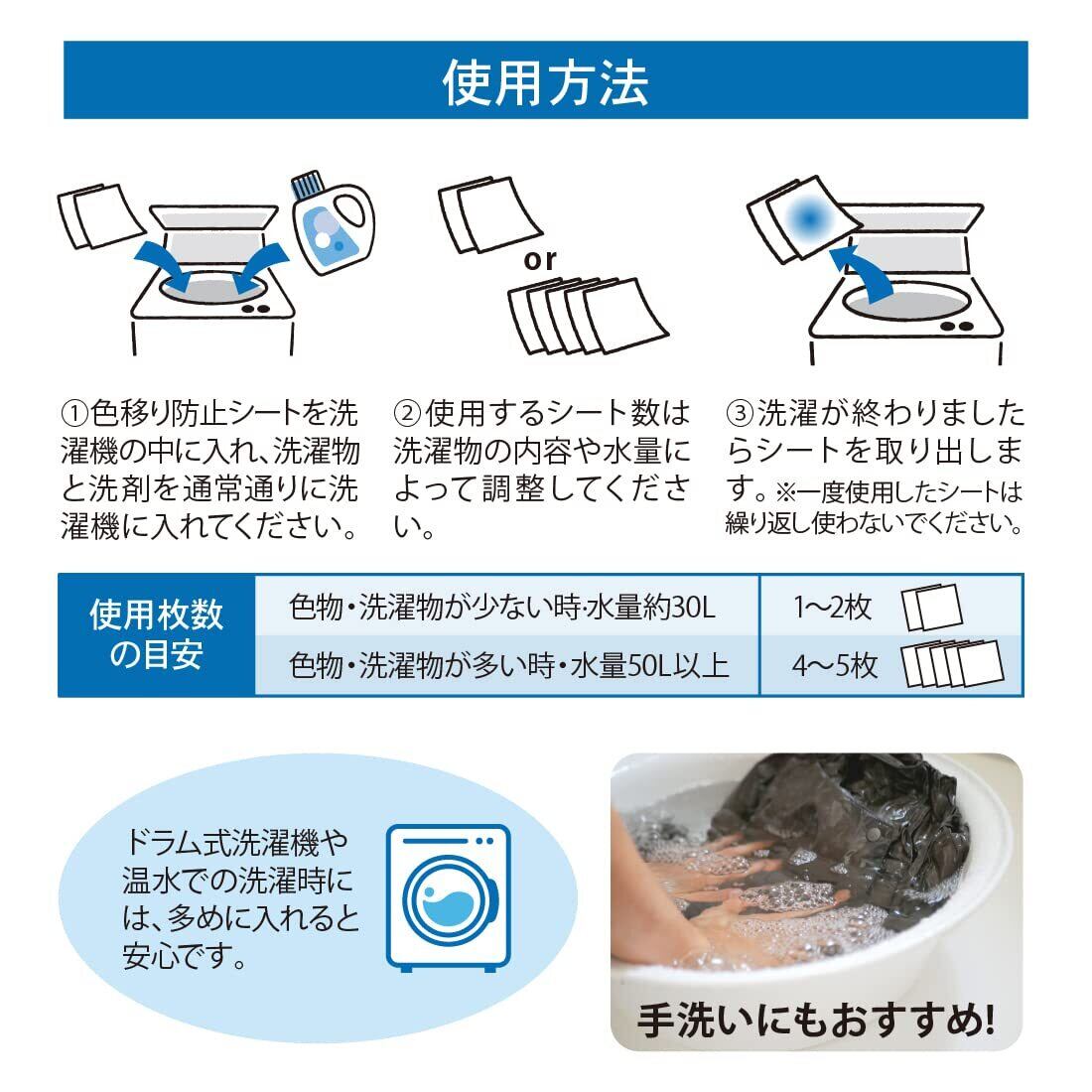 【 洗濯時に入れるだけでOK! 】 全自動洗濯機 縦型 トラム式 両方 / 色移り防止シートを洗濯機の中に入れ、洗濯物と洗剤を通常通りに洗濯機に入れてください。使用するシート数は洗濯物の内容や水量によって調整してください。【 手洗い もOK 】
