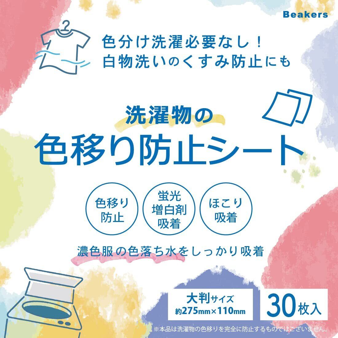 洗濯物 色移り防止シート 30枚 (大判 28×11cm くすみ防止 無香料 洗濯機 手洗い 対応 まとめ洗い 花粉)【 ビーカーズ 】
