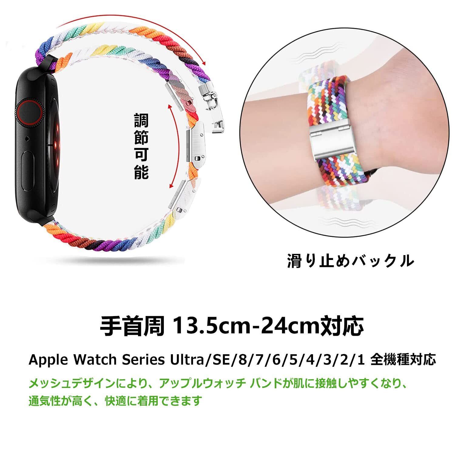 アップルウォッチ バンド Apple Watch バンド 49mm/46mm/45mm/44mm/42mm 編み込み 伸縮 調整可能 ソロループ Series Ultra2/Ultra/10/9/8/7/6/SE/SE2/5/4/3/2/1 全機種対応 スポーツ ナイロン ベルト