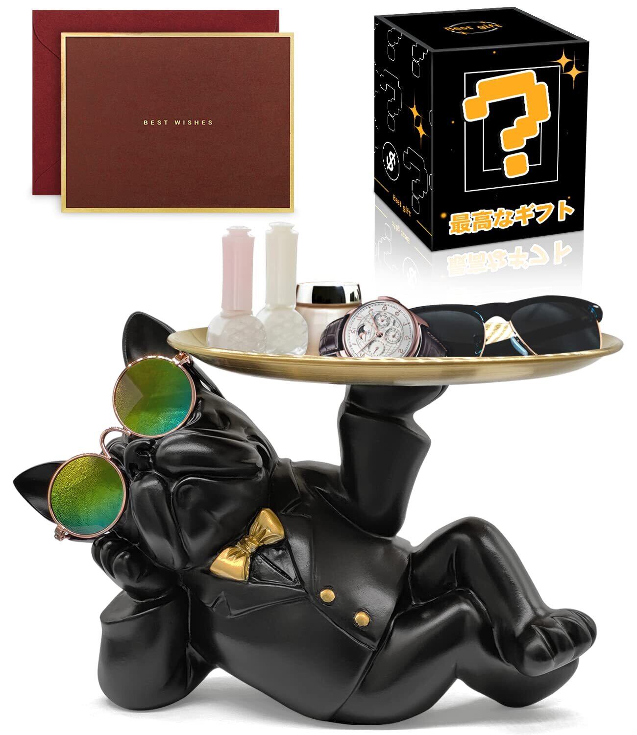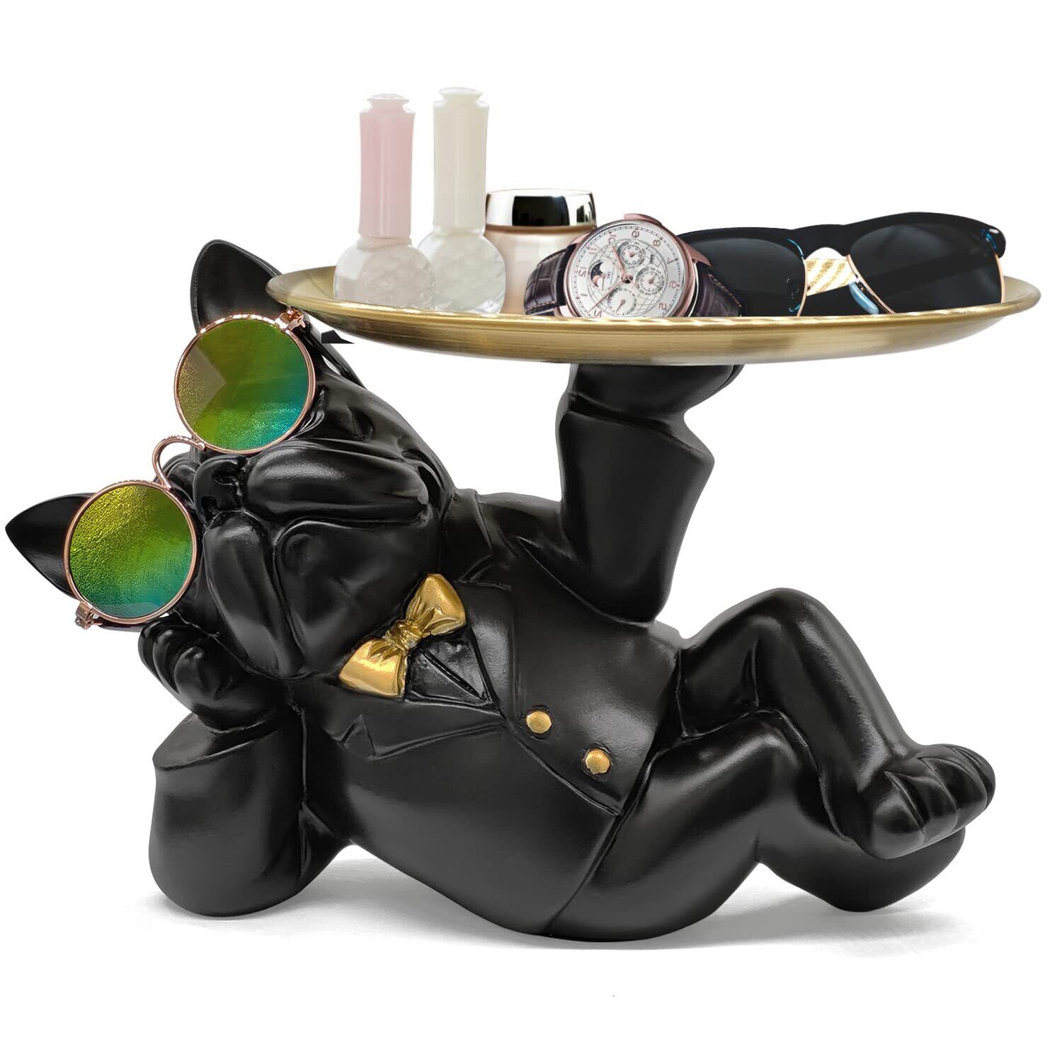 皿を捧げる犬さん お皿 SENJWARM 装飾 2in1 置物 キー収納トレイ リエイティブ 玄関に飾る 玄関置物 眼鏡置/ハンコ/印鑑/リモコン/化粧品/キャンディーなど小物収納 幸運の彫刻 樹脂製 誕生日プレゼント 男性 恋人 誕生日 クリスマスプレゼント、新年の贈り物 最適なプレゼント(眼鏡付き)