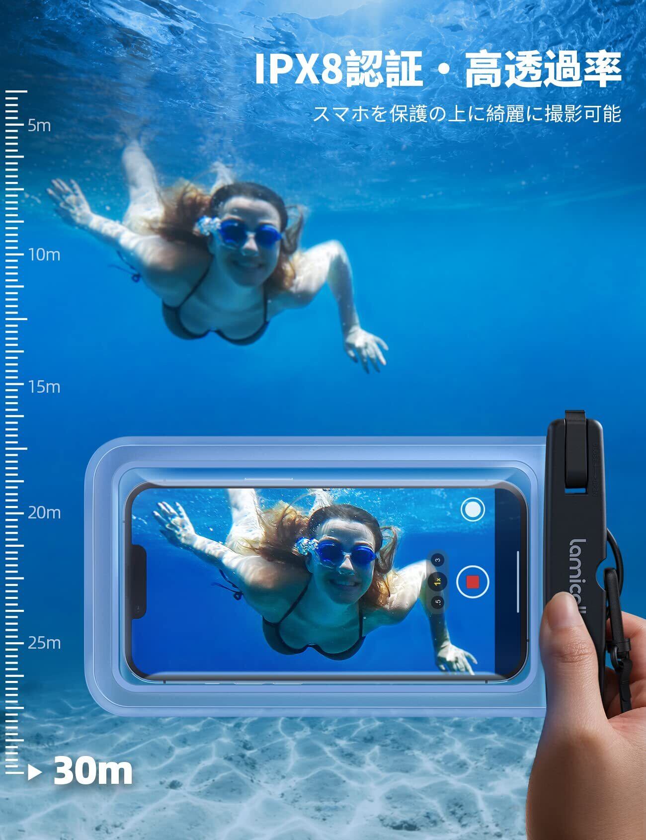 Lamicall 【2枚セット 海 】 スマホ 防水 ケース 雨の日 IPX8 : プール お風呂 完全防水 水中撮影 スマホ ぼうすい ケース アイフォン スマフォ すまほ アイホン 携帯 けいたい 顔認証 首かけ 海水浴 水泳 潜水 温泉 iPhone 16e 16 15 14 plus pro promax 13 mini 12 se Huawei Xperia android に対応 透明
