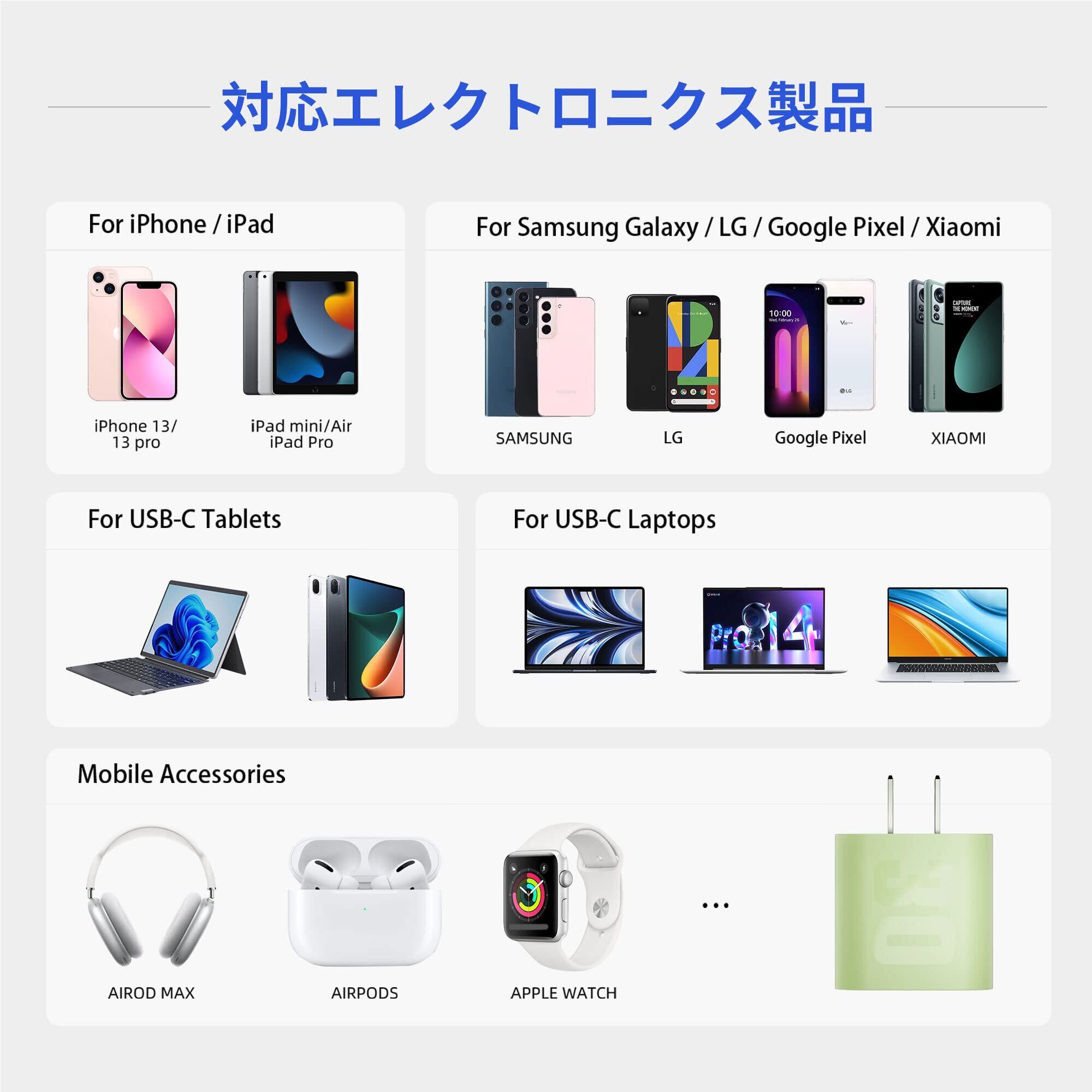 【幅広い互換性】:iPhoneやGalaxy、Xperiaなどの各種スマートフォンだけでなく、AirPods等のスマートデバイスに幅広く対応できます。