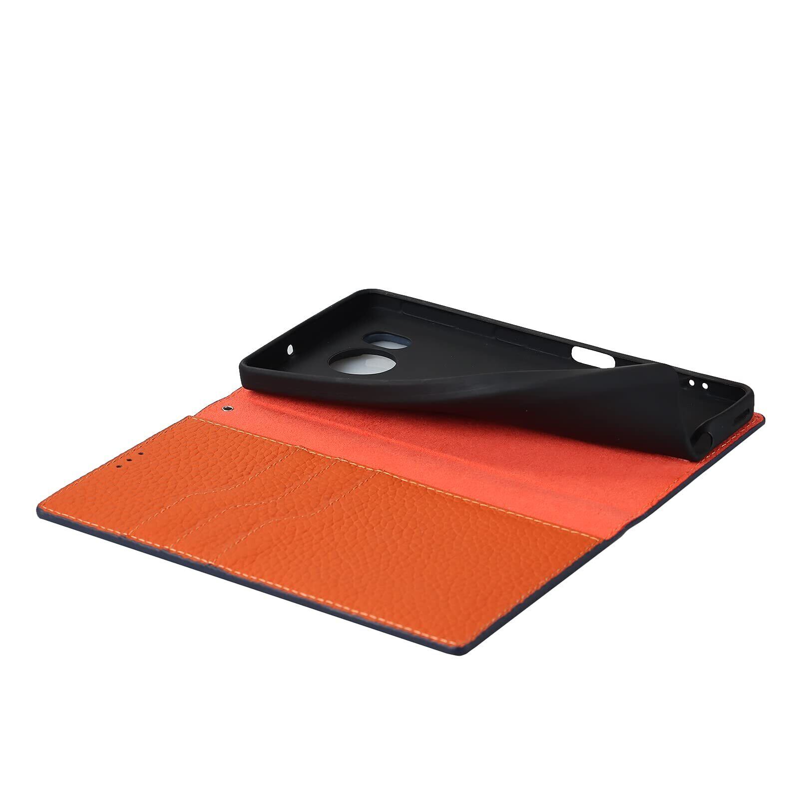 AQUOS Sense7 Plus ケース手帳型 sense7plus softbank ケース Pelanty 牛革製品 本革レザー 財布型カバー SHARP aquos Sense 7 Plus カード収納 スタンド機能 内蔵マグネット 手作り柔らかい スマホケース シャープ アクオス センス7 プラス 携帯カバー ストラップ付 ヘッドフォンケーブル 耐衝撃 [6色選択] ネイビー