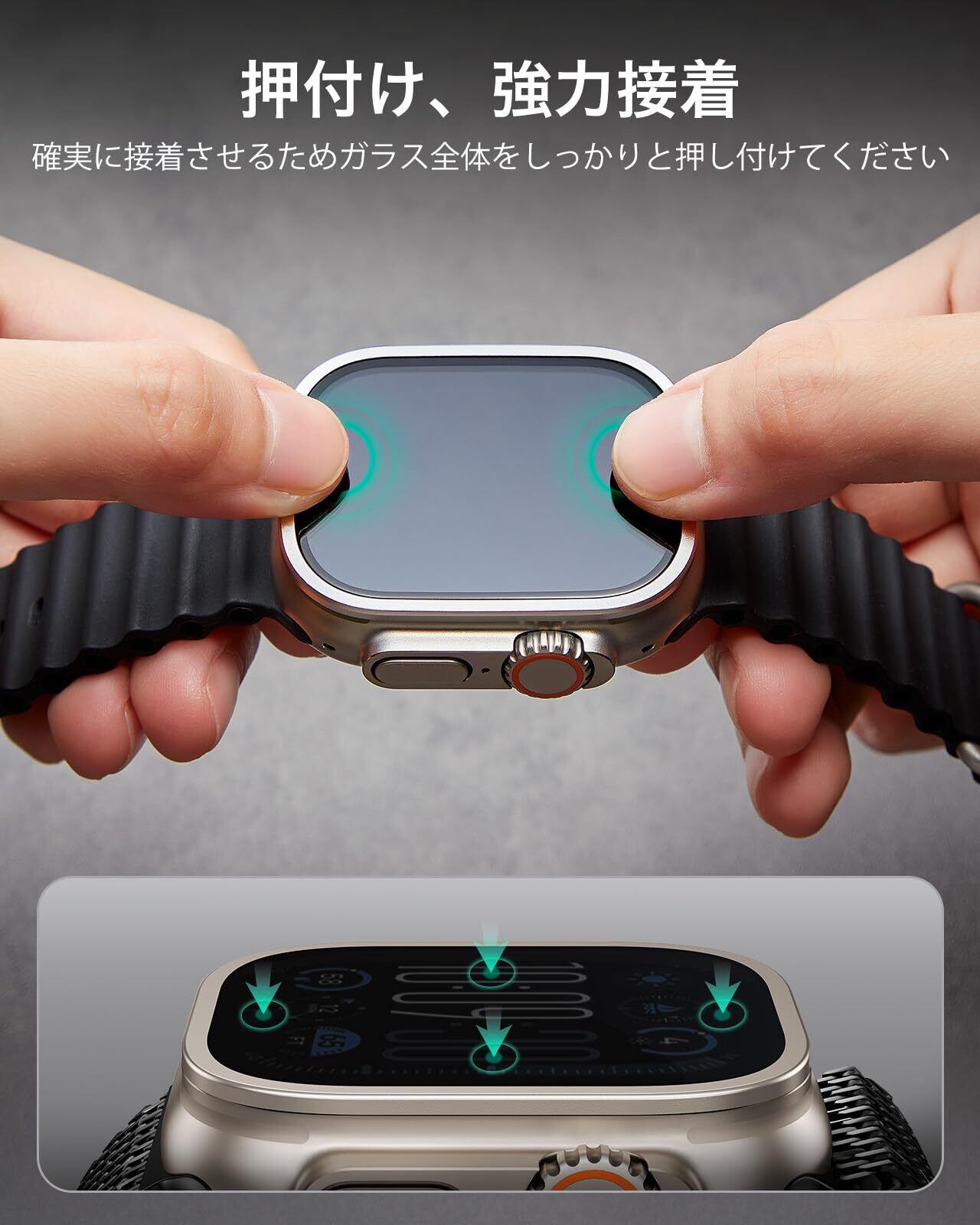 【2枚セット】ESR Apple Watch Ultra 2 / Ultra 1 ガラスフィルム (2024/2023/2022, 49mm) 専用 【ステンレススチールフレーム+強化ガラスフィルム 一体型】 全面保護 アップルウォッチ Ultra 49mm 画面保護カバー 耐傷性 指紋防止 チタニウム色