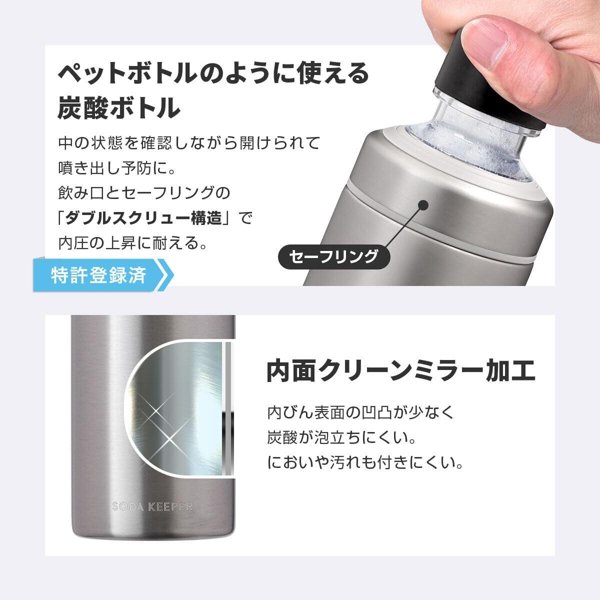 アトラス 炭酸 水筒 炭酸用ボトル 600ml 炭酸ボトル 炭酸水 保冷 炭酸飲料対応 真空断熱 直飲み グロウラー ビール シルバー SHUWAT ソーダキーパー ASOK-700SV