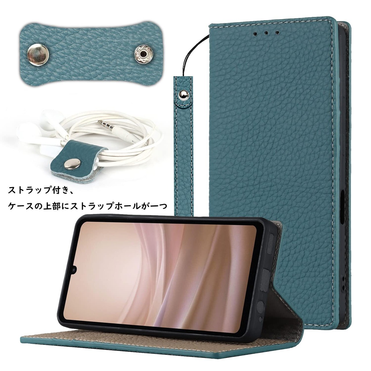 Havaya AQUOS Sense7 ケース SH-53C ケース sh53c スマホケース SHG10 手帳型 本革 ストラップ 耐衝撃 牛革 au アクオス センス7 カバー docomo 楽天モバイル SoftBank レザー カード収納-スカイブルー
