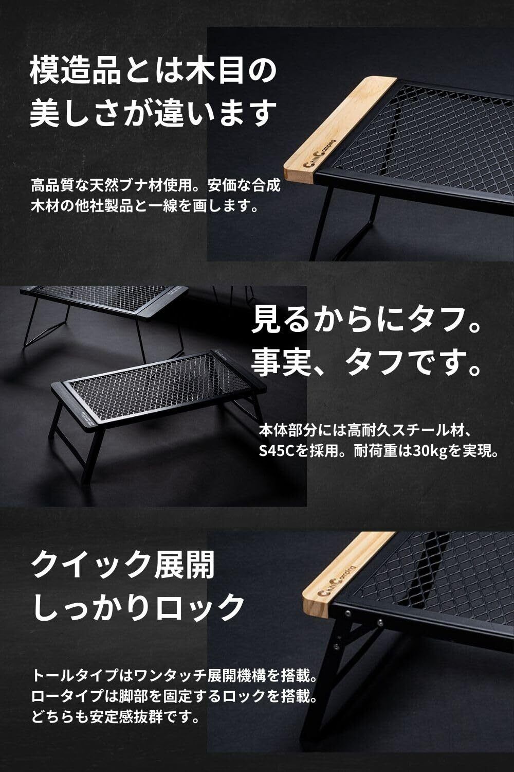 【キャンプサイトを彩るアイアン×ウッドのコントラスト】木目が美しい天然木と金属の質感が融合したデザインが、あなたのキャンプ シーンを盛り上げます。