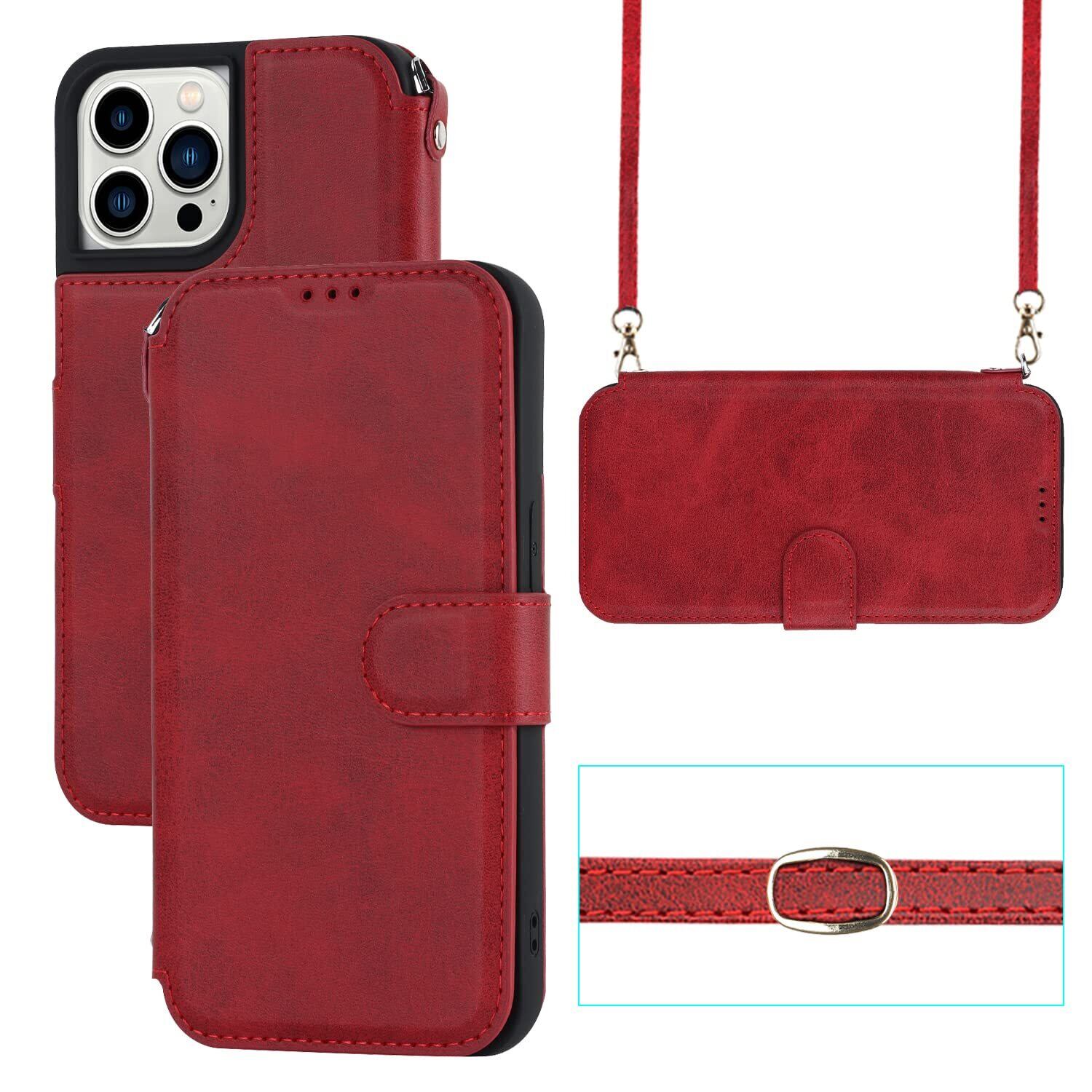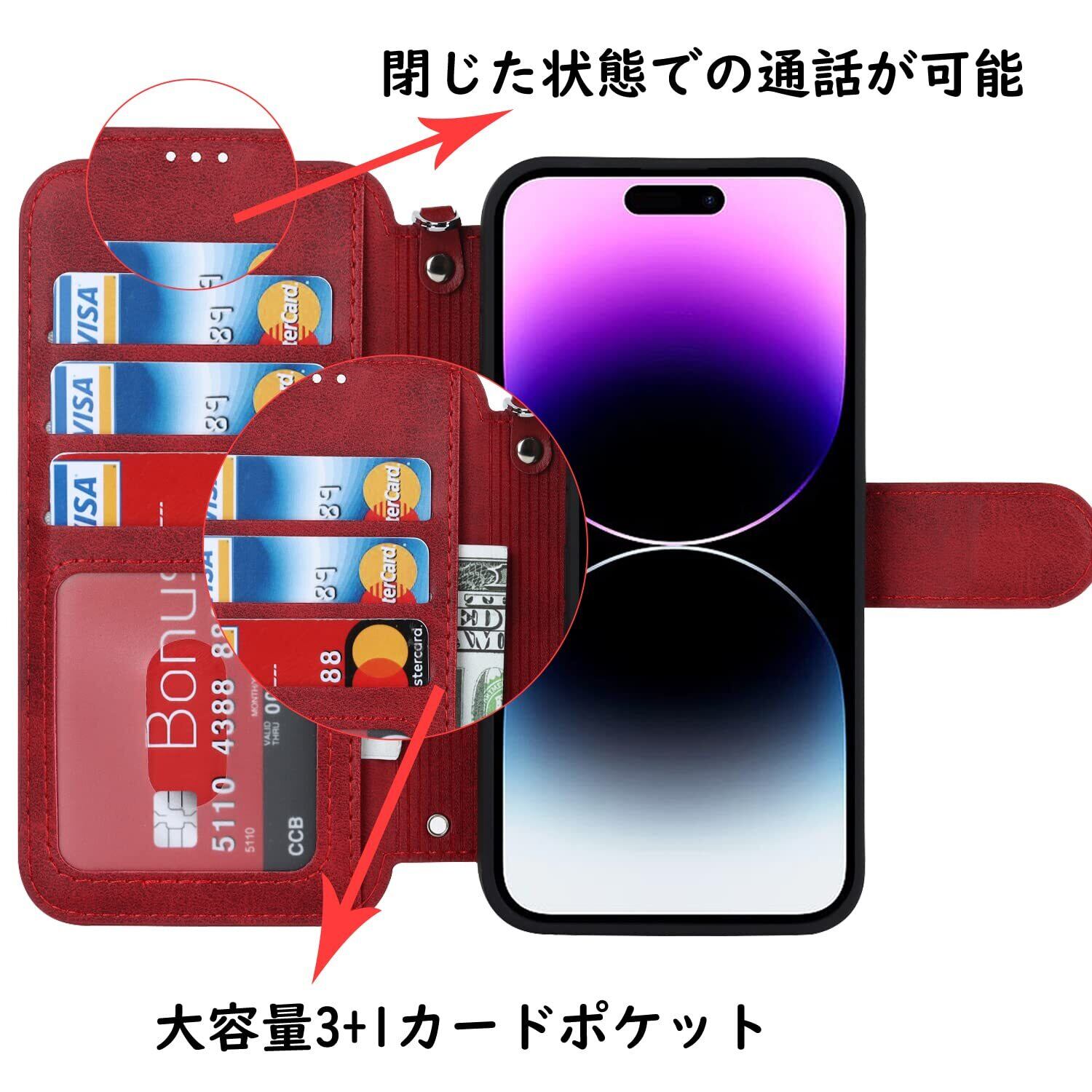 Havaya スマホショルダー iPhone14Pro ケース iphone 14 pro ケース アイフォン14pro ケース スマホケース ショルダー 米軍MIL規格 軽薄 手帳型 ストラップ 耐衝撃 レンズ保護(アイフォン14pro/アイホン14プロ/アイフォン14プロ/あいふぉん14pro 通用 6.1インチ対応)-ワインレッド