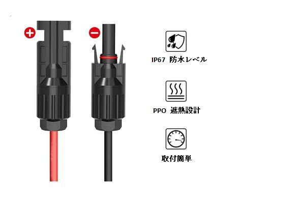RYOKUJP ソーラーケーブル3m(MC4型コネクター付延長線 両端加工3m*2本/組) 黒赤3.5sq
