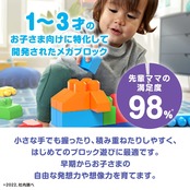 【内容】1~3才のお子さま向けに特化して開発された、メガサイズのブロック80個セット(ブルー)。適度な固さの特別に大きなサイズのブロックは、小さなお子さまでも重ねたり、はずしやすい設計。ストレスなく夢中になって遊べます。