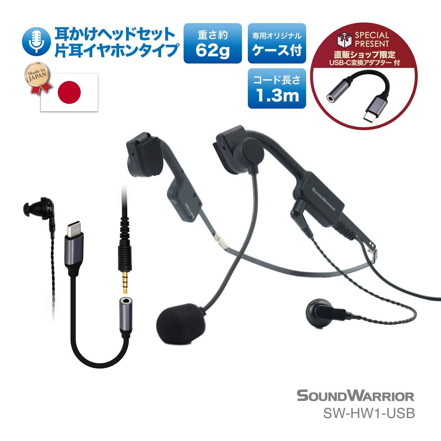 SOUNDWARRIOR ヘッドセット B-Frame-air 片耳イヤホンタイプ 超軽量 有線 折りたたみ式 USB-C アダプター + オリジナル専用ケース付 日本製 SW-HW1-USB