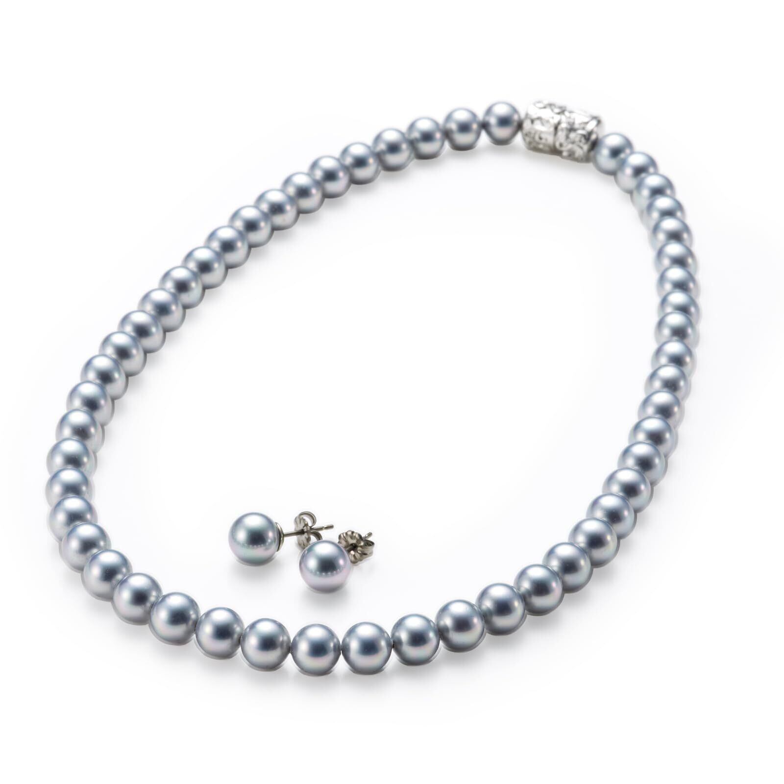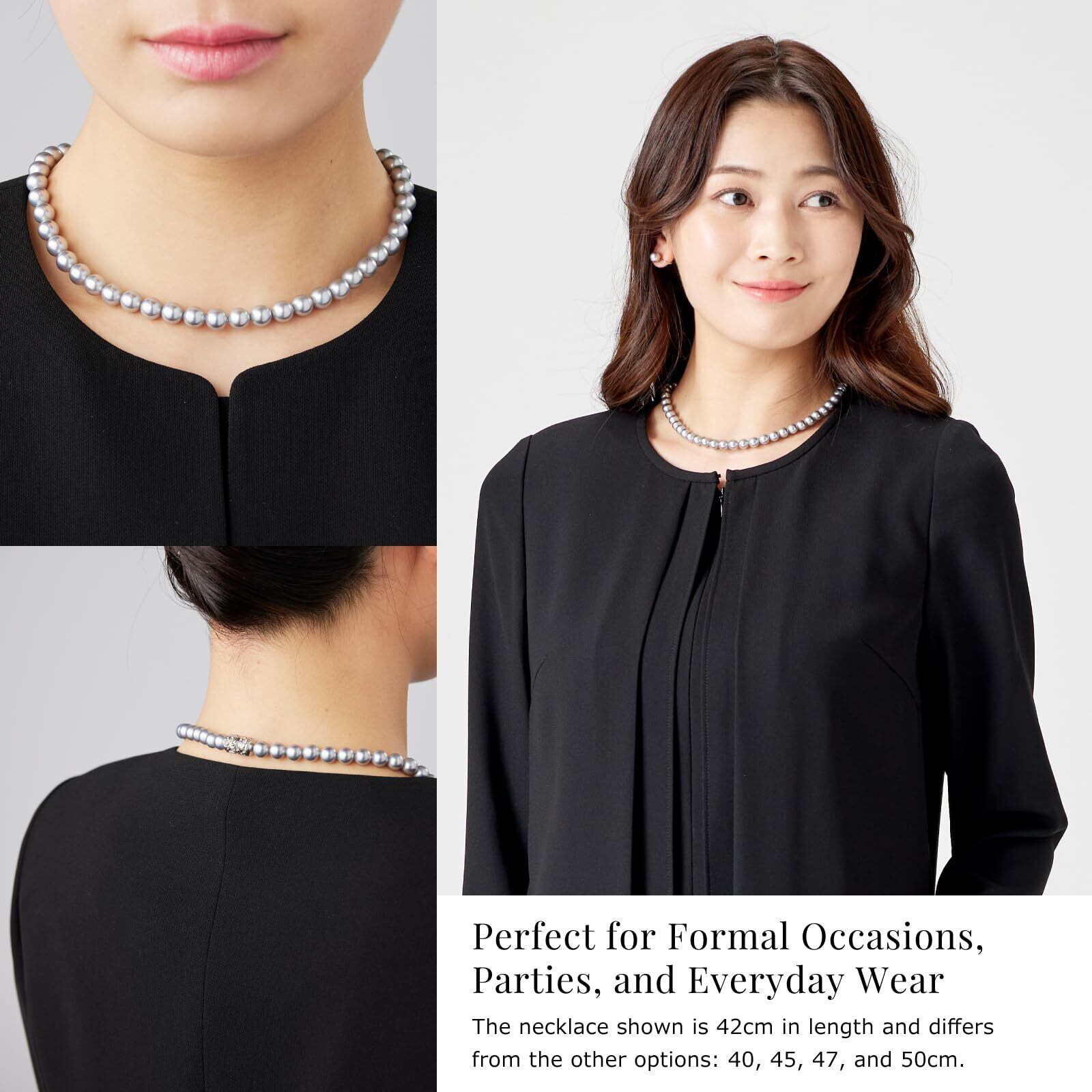 [アニバオーガニック] [人工真珠の最高級品] [あこや・本真珠にも劣らない美しい輝き] パールネックレス 冠婚葬祭 日本製 天然貝核 マグネット留め or クラスプ留め イヤリング or ピアス [金属アレルギー対応] セット 8mm珠 40, 42, 45, 47, 50cm