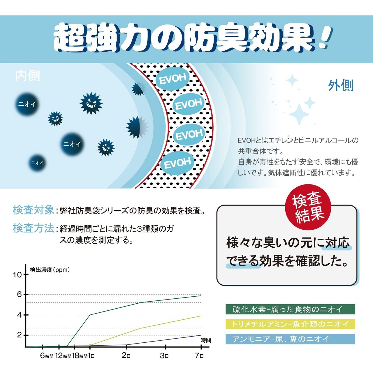 いろいろな場合で:赤ちゃん・大人のおむつ処理やペットの汚物処理だけでなく、嘔吐物や屋外の排泄物処理にも使用できます。におい移りやすい物の収納に適します。