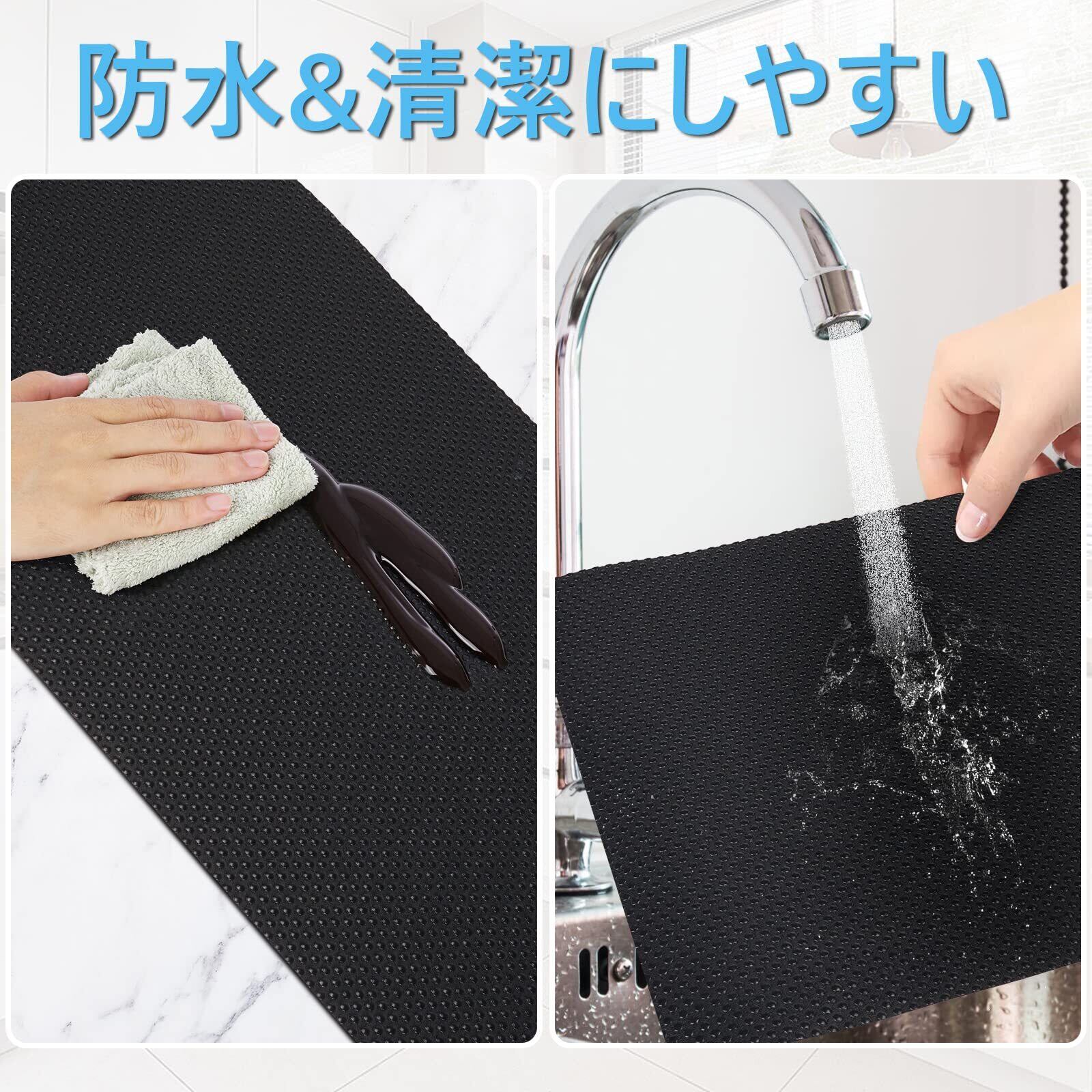 【防水·防油】ウォッシャブルキャビネットマット水や油が溢れたり漏れたりする場合、清潔にするのは簡単です。もし仮に水や油が少しでも漏れたら、濡れた布やスポンジで簡単に拭き取るができます;かなりの量の水と油に対しては、石鹸と水使ってしっかり洗い流すことができ、洗浄が簡単で乾燥が早くなります。いずれにしても、新品の状態を保つことができます。