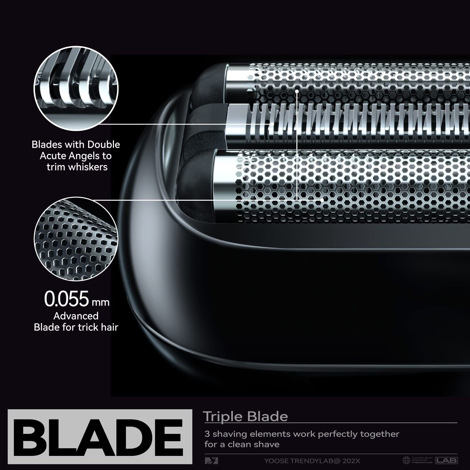 yoose 交換用ヘッド 往復式 電気シェーバーの磁気ヘッド 三枚刃 乾湿両用 合金製 ミニ シルバー TRIPLEシリーズ