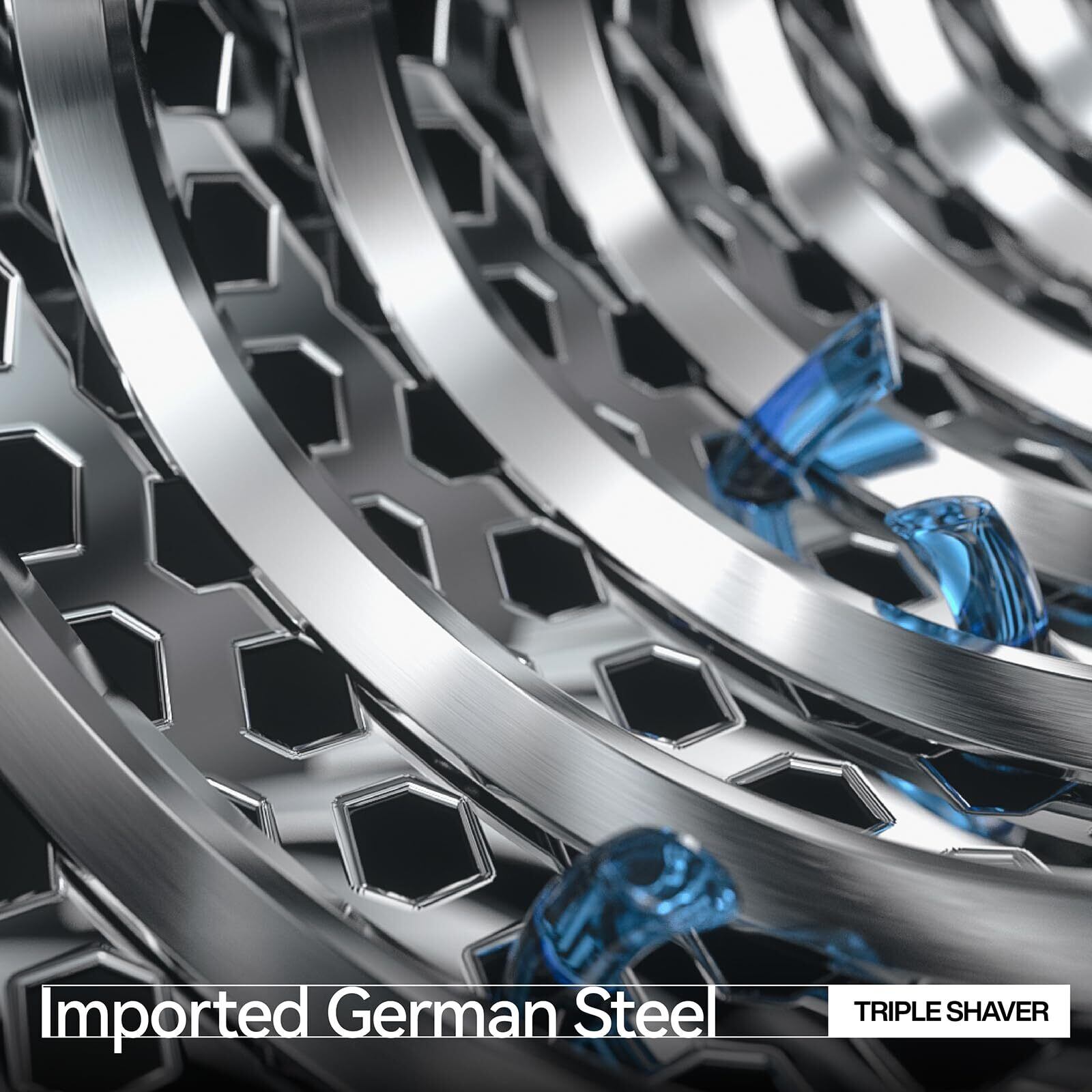 【日本製極薄三枚刃】高品質な日本製の3枚刃が効率的に組み合わされ、ショートからロングまできれいに剃ることができます。0.055MMの超鋭利な極薄ブレードで、より顔に近づけます。