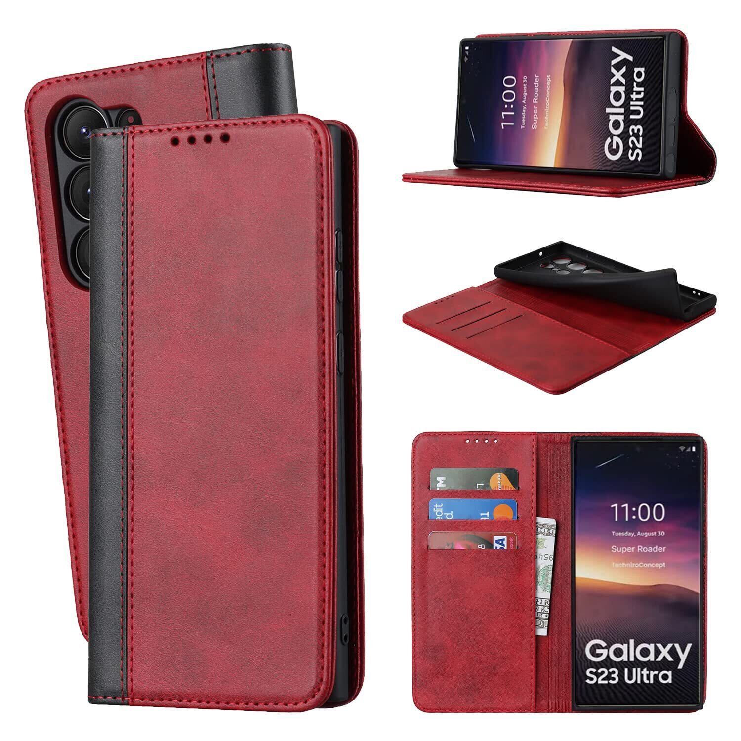 Havaya Galaxy S23 ultra ケース ギャラクシーs23 ultra ケース sc52d ケース 手帳型 S23ウルト SCG20 au ドコモ samsung サムスン 耐衝撃 SC-52D カバー SoftBank カード収納 スタンド機能 レザー-レッド+ブラック