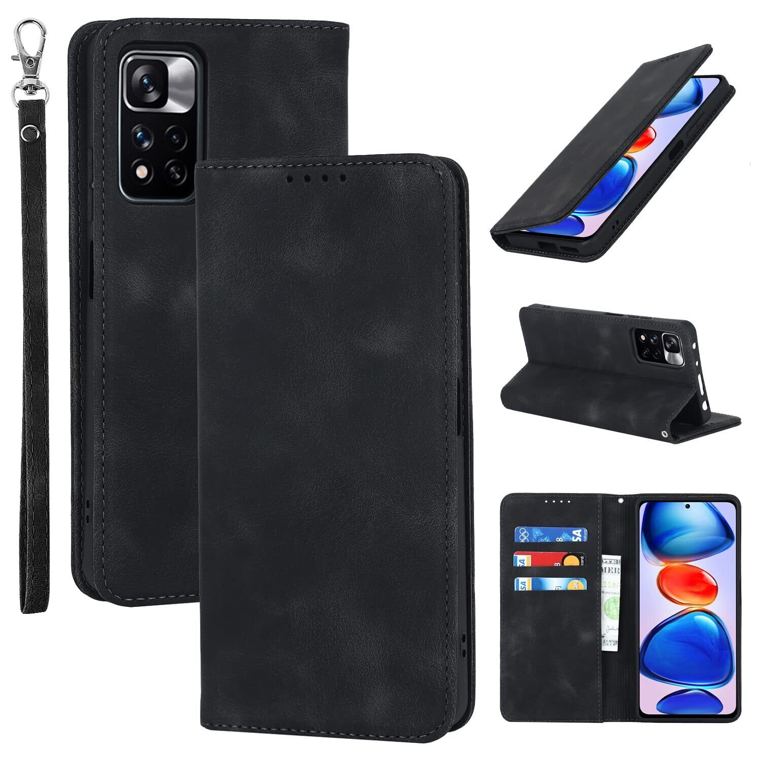 Havaya Redmi Note 11 Pro 5G ケース レッドミー ノート 11Pro ケース 手帳型 ストラップ au Xiaomi Redmi Note 11プロ 耐衝撃 カバー softbank/docomo マグネット式 カード収納 レザー スエードの質感-ブラック