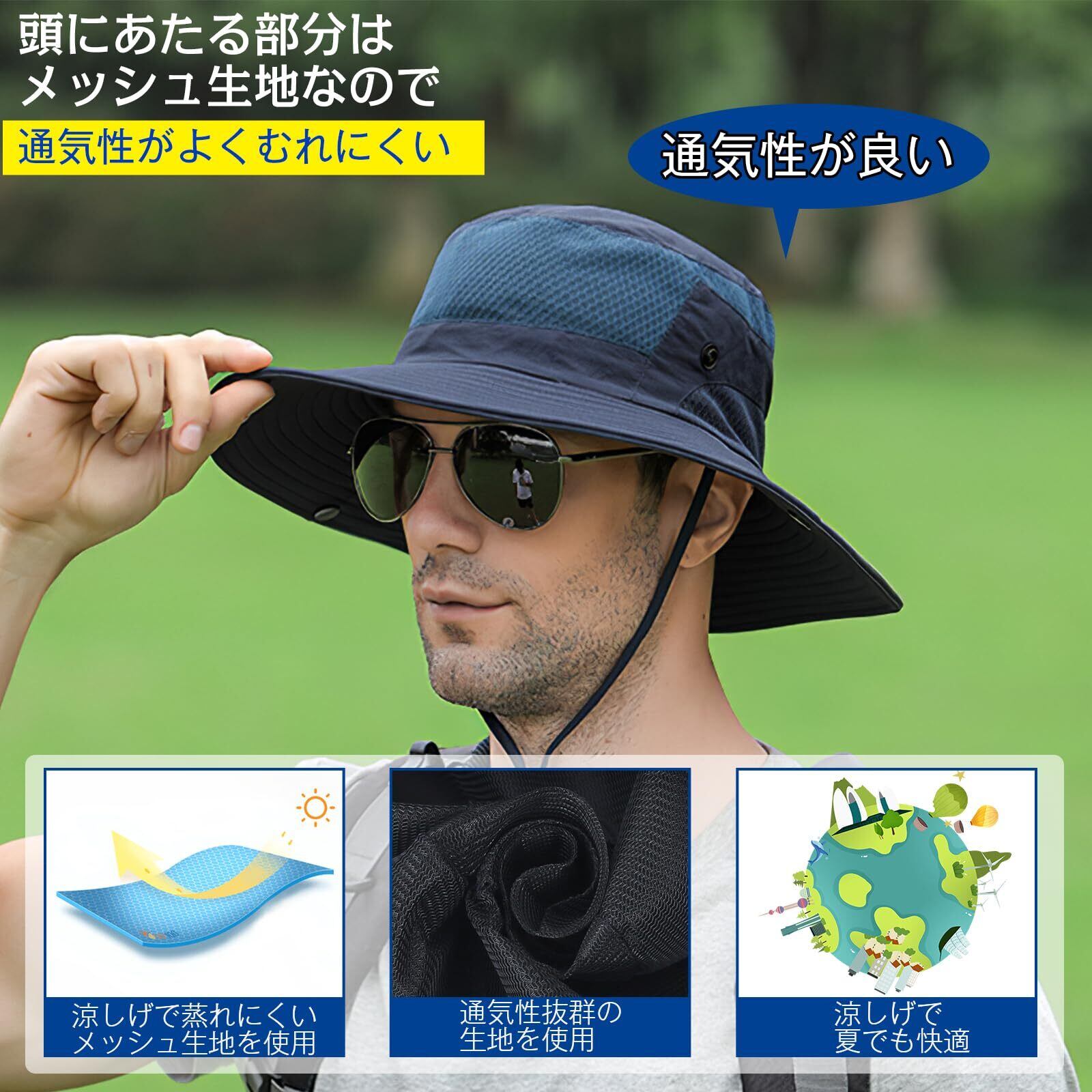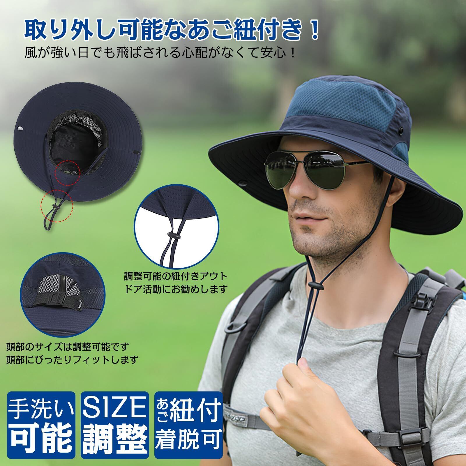 [Favoreal] 日除け帽子 メンズ 夏用 日焼け防止 UVカット UPF50+ つば広 ハット 2WAY メッシュ通気 大きいサイズ あご紐付き 折りたたみ 超軽量 キャンプ サイドハット アウトドア 日よけ帽子 自転車 釣り 登山 おしゃれ プレゼント
