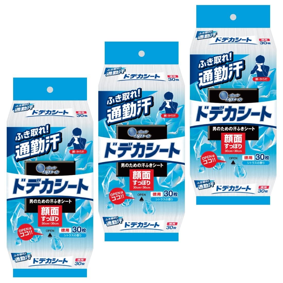 エリエール 汗拭きシート 大判サイズ ドデカシート for MEN 90枚(30枚×3パック) 爽やかなシトラスの香り【まとめ買い】