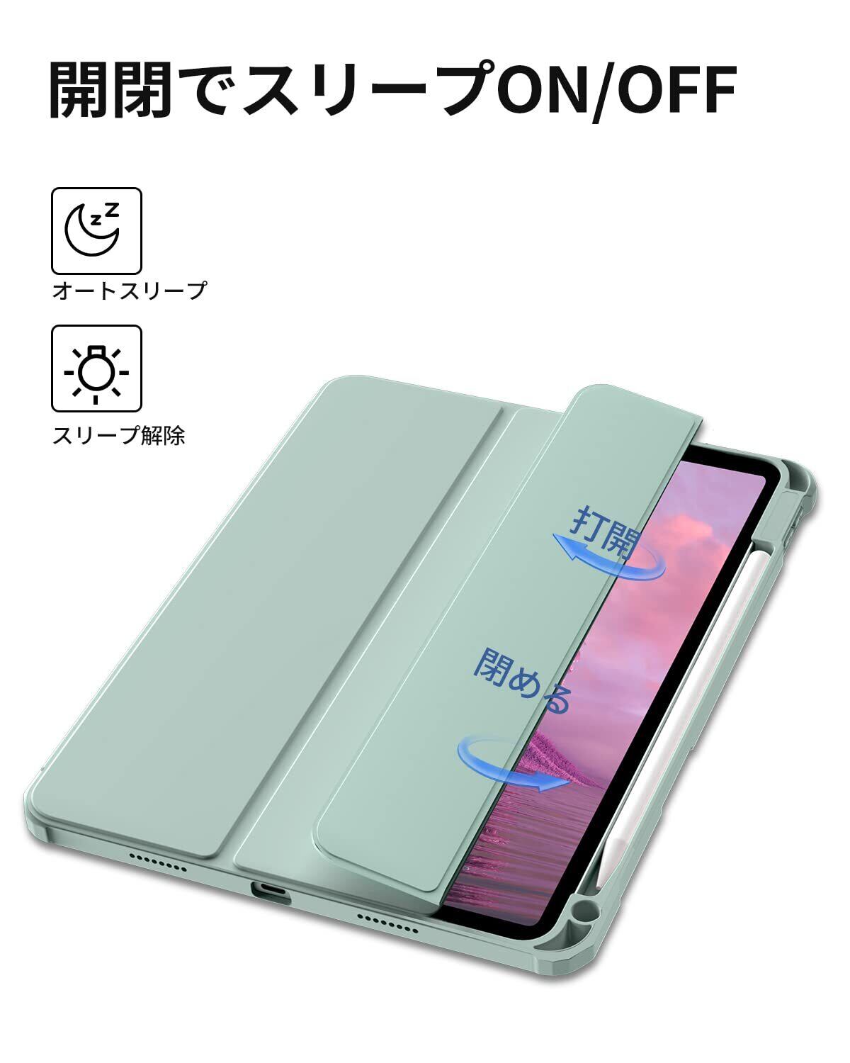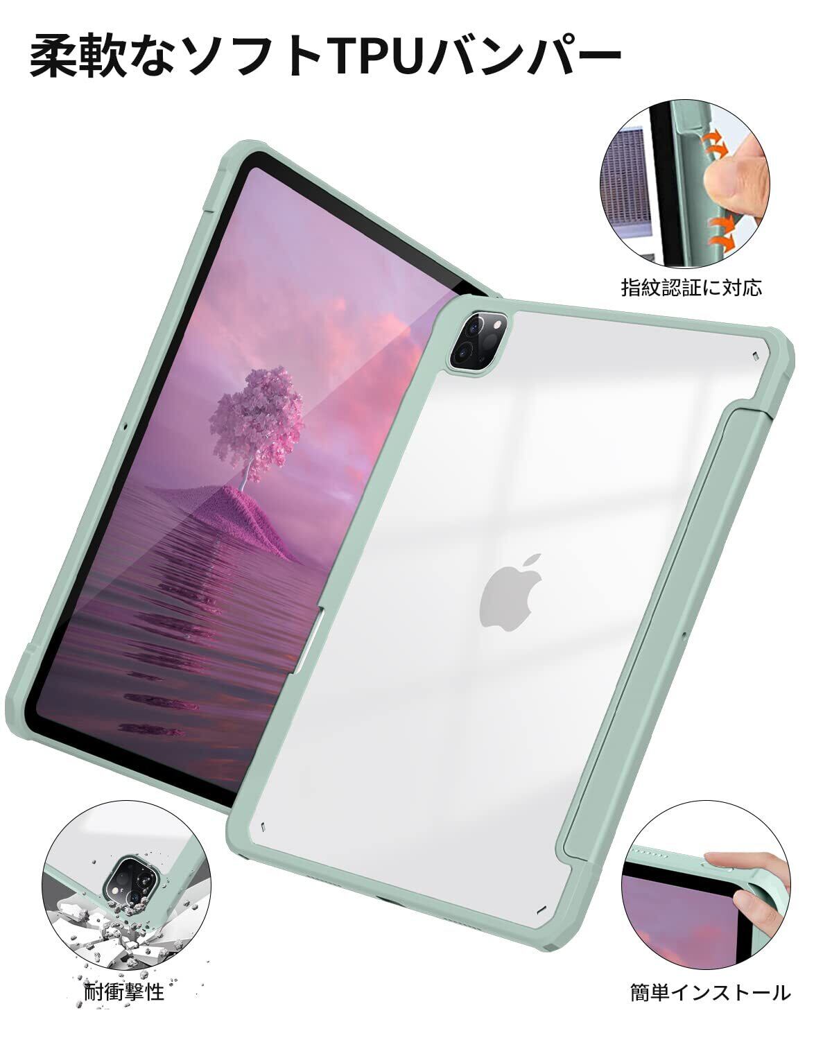 Aoub iPad Pro 11インチ ケース (2022/2021/2020) 第4/3/2世代 透明 バックカバー Apple Pencil 収納可能 Apple Pencil 2 ワイヤレス充電対応 三つ折スタンド スリープ機能 軽量 薄型 傷つけ防止 PU合成レザー TPU クリアバックカバー ライトグリーン
