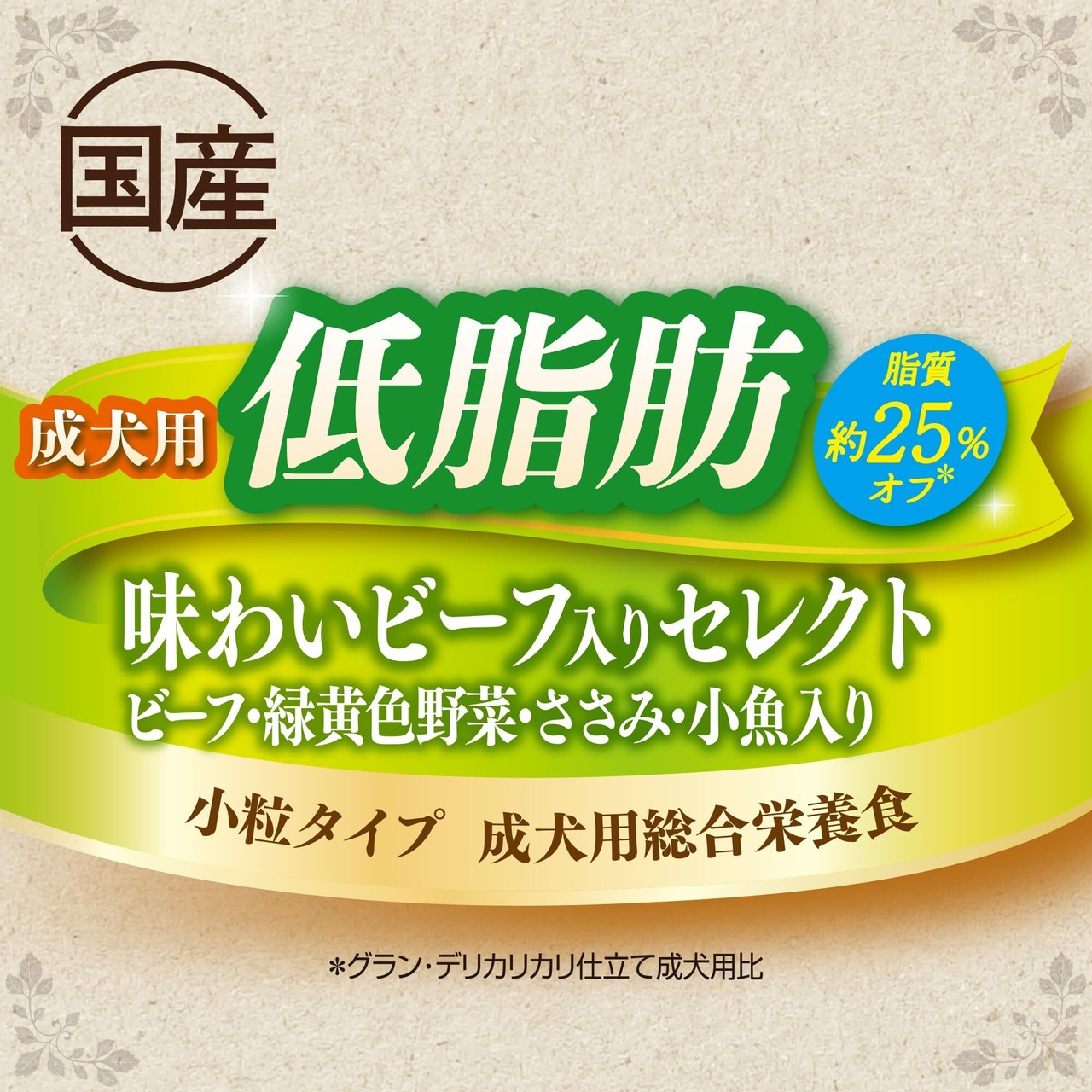グラン・デリ 【ジャンボパック】グランデリ ドッグフード ドライ カリカリ仕立て 成犬用 低脂肪 味わいビーフ入りセレクト 脂肪分約25%カット 2.7kg 国産 ユニチャーム