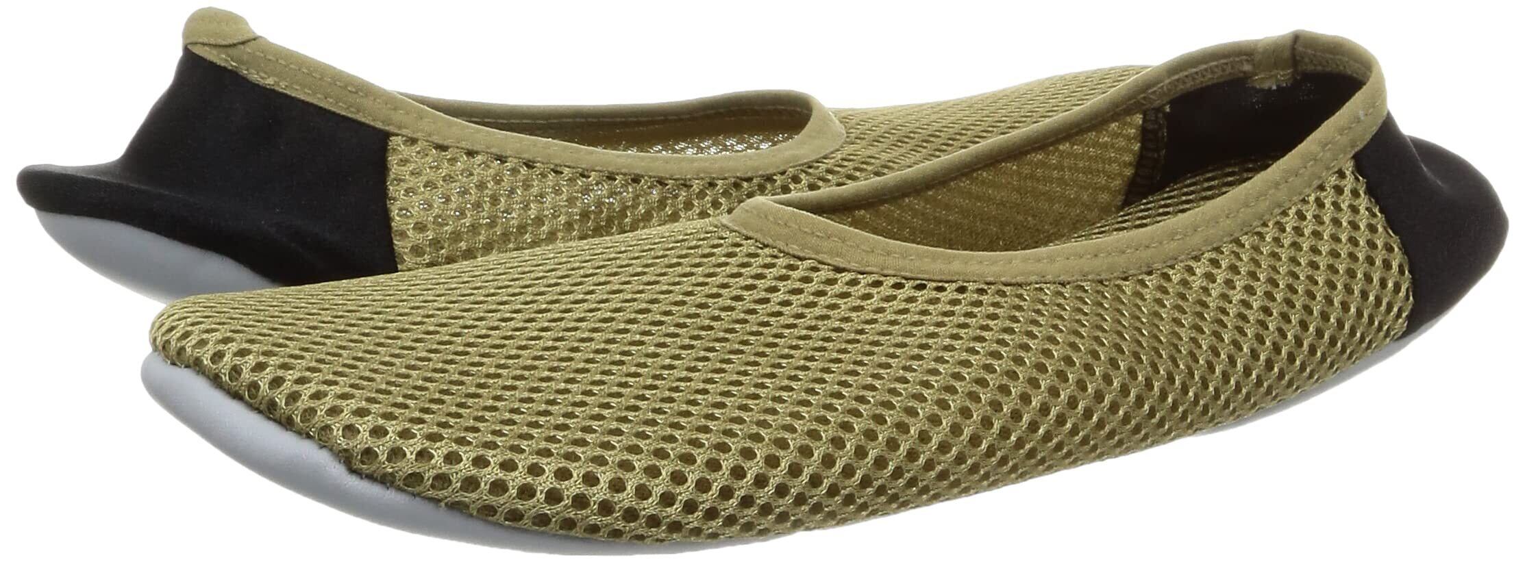 ・メッシュ素材にすることで、通気性がよく、サラッとムレにくい。足裏は防水仕様ですべりにくい素材で、キッチンなどの水まわりでの着用も安心。かかとにクッションをプラスし、疲れにくく快適なはき心地に。
