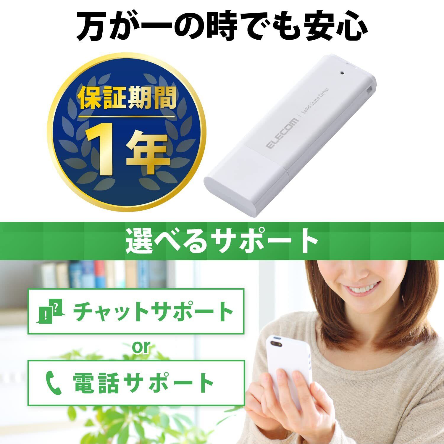 エレコム 外付けSSD 1TB ポータブル USB 5Gbps / USB3.2(Gen1)対応 小型 キャップ式 ホワイト ESD-EMC1000GWH