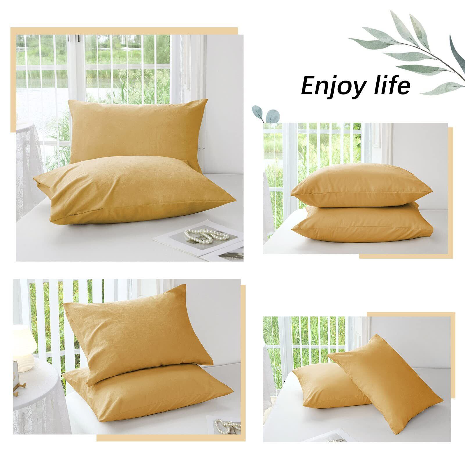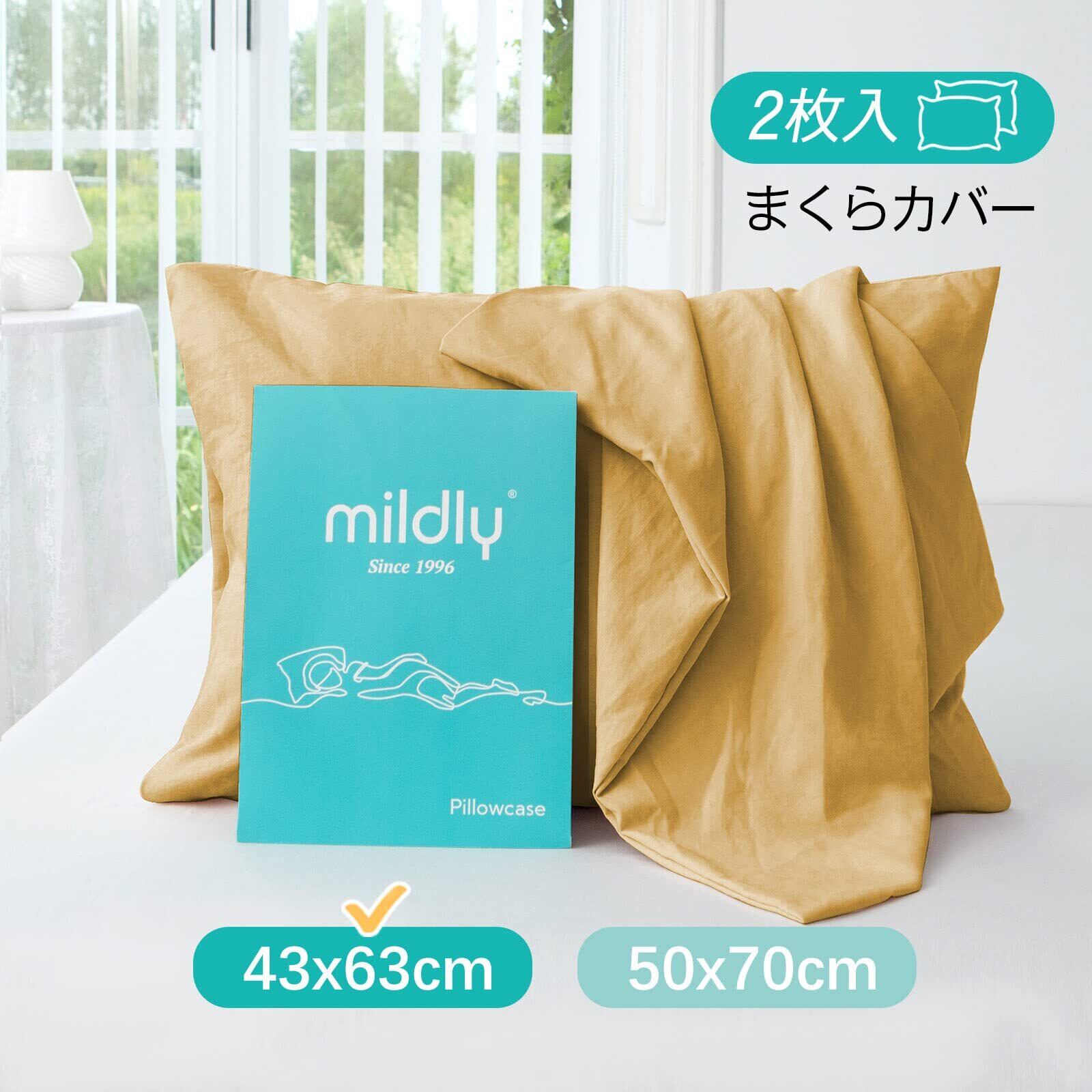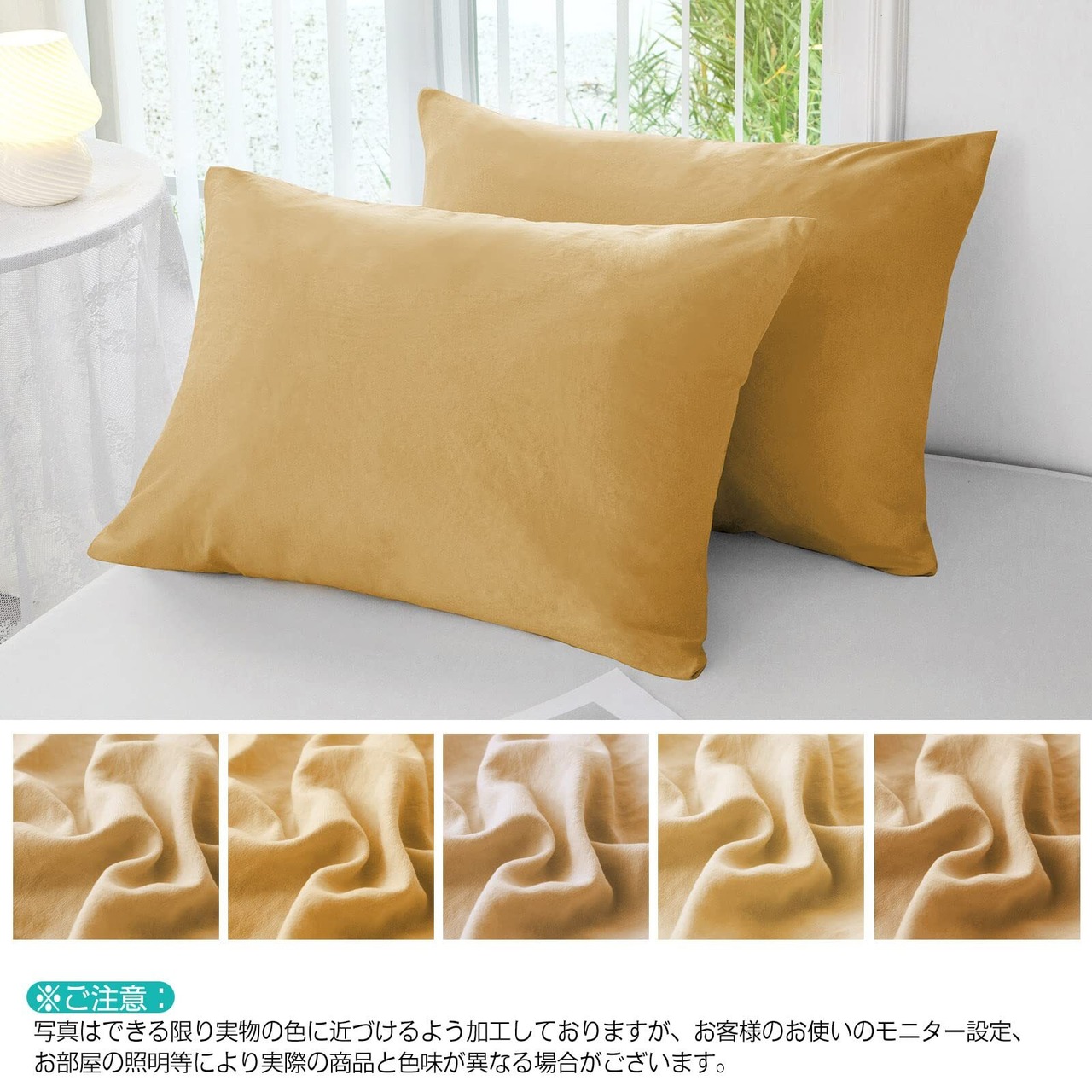 枕カバー 43 63 2枚入 ピローケース 水洗い加工 ピーチスキン おしゃれ まくらカバー 単品 枕 カバー 防ダニ 抗菌 防臭 封筒式 柔らかい 無地 さらさら肌触り 吸汗 速乾 【 マスタードイエロー ・ 43x63cm 】