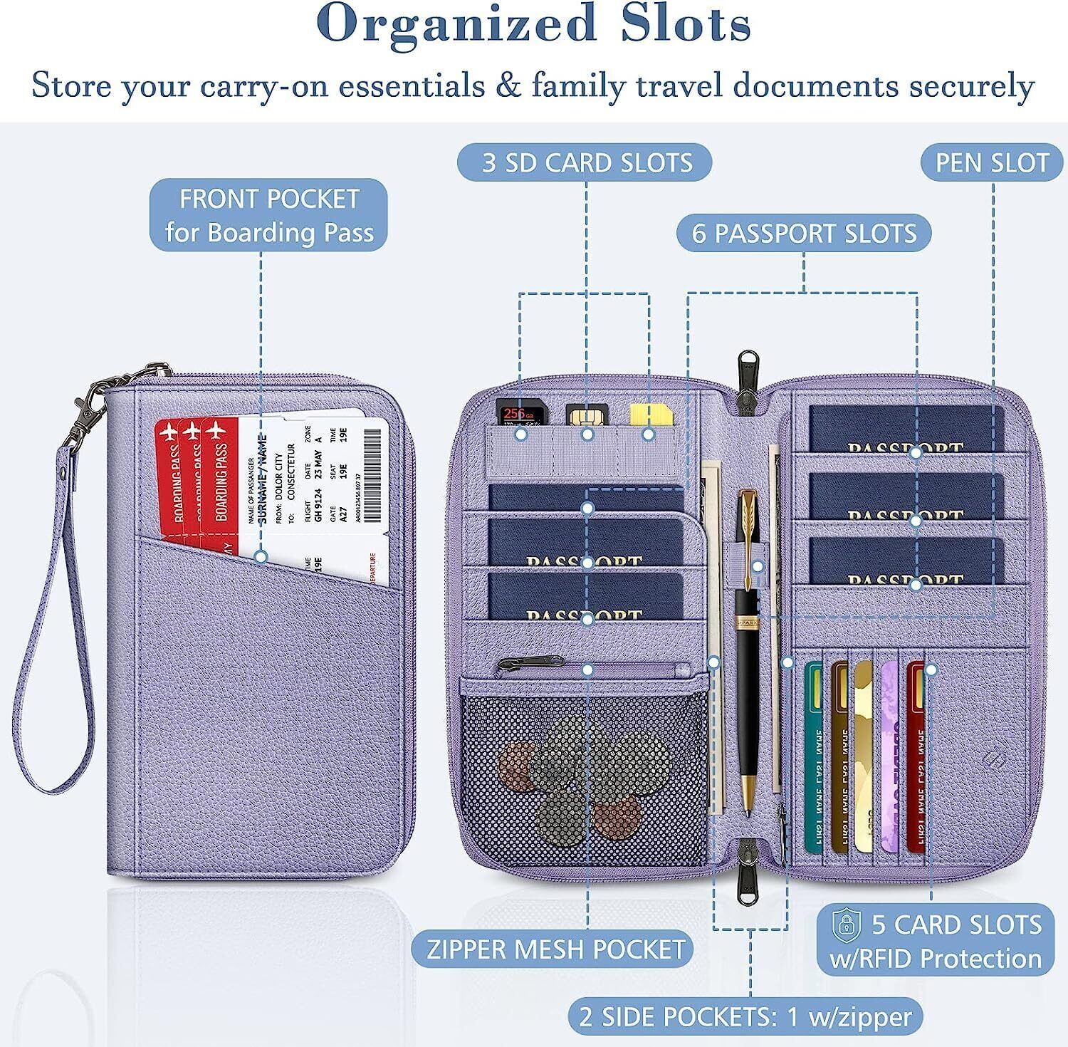 Fintie パスポートケース 家計管理ケース トラベルウォレット カードケース RFID スキミング防止 家族旅行 海外旅行用 パスポートカバー 多機能収納ポケット クレジットカード 航空券 PU合成レザー(ライラックパープル)