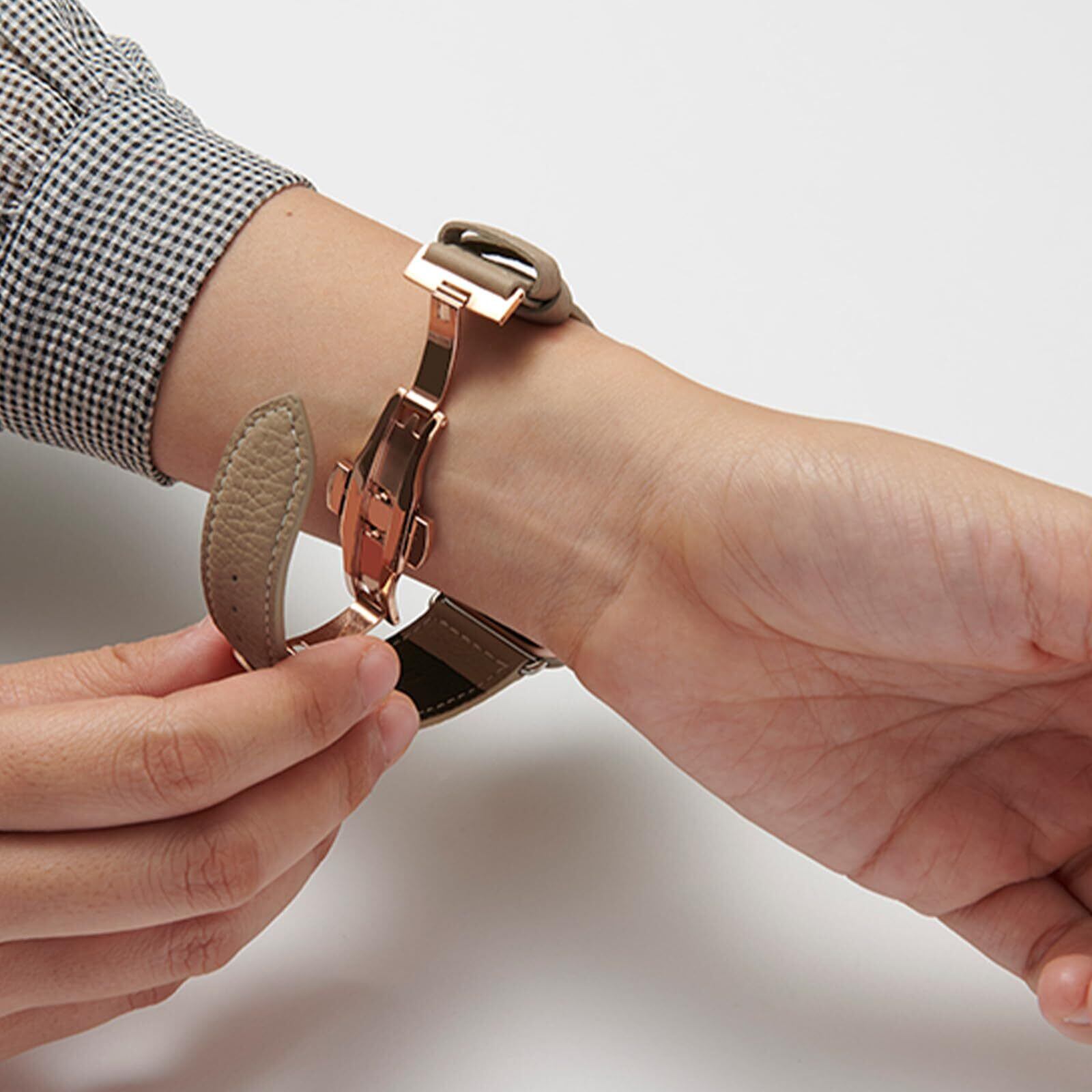 EPONASは、トップメゾンも使用するレザーを使用した高級レザーバンド。Suica、チャット、健康データ計測などのの便利な機能を、 ビジネスやファッションシーンでも。ワンタッチで、EPONAS レザーバンドに交換して、あなたの腕元をメゾンクオリティに。