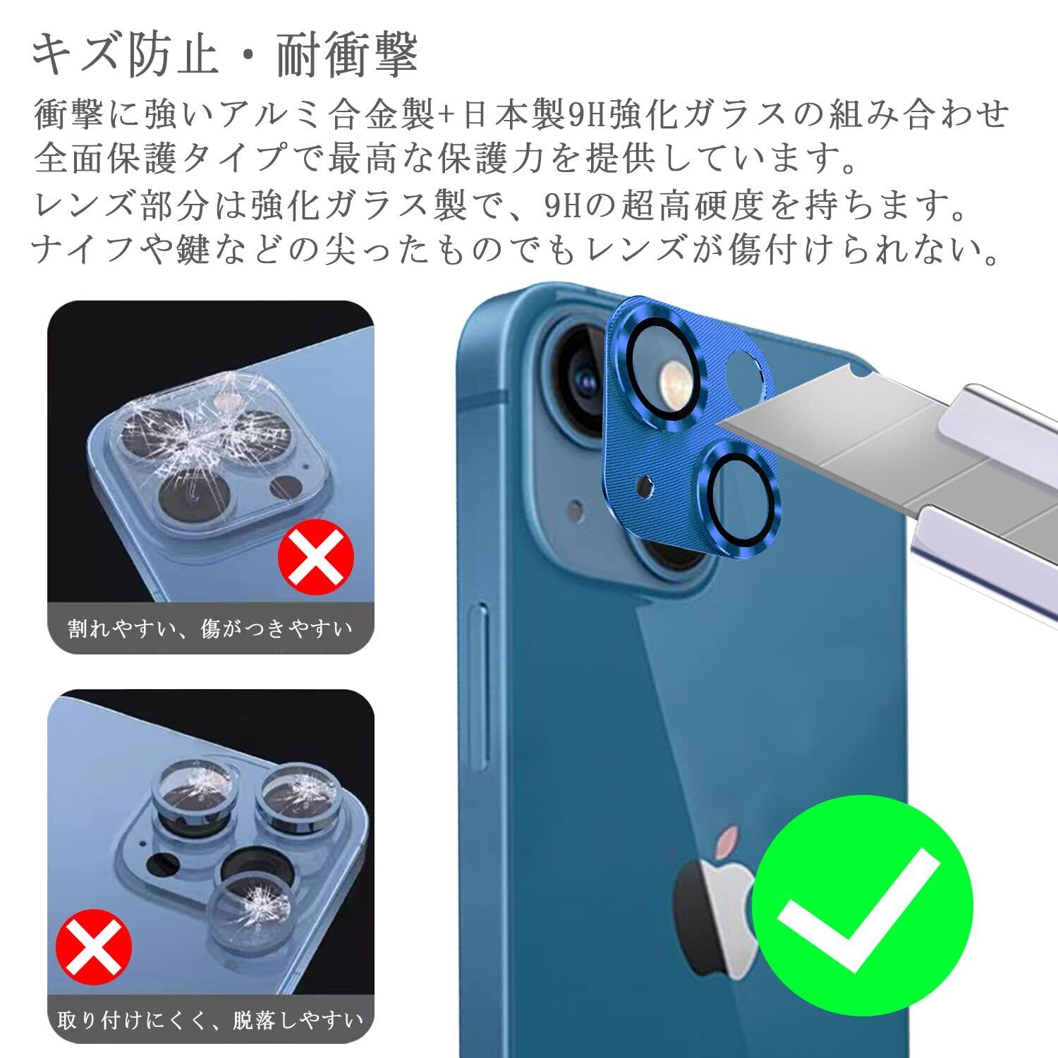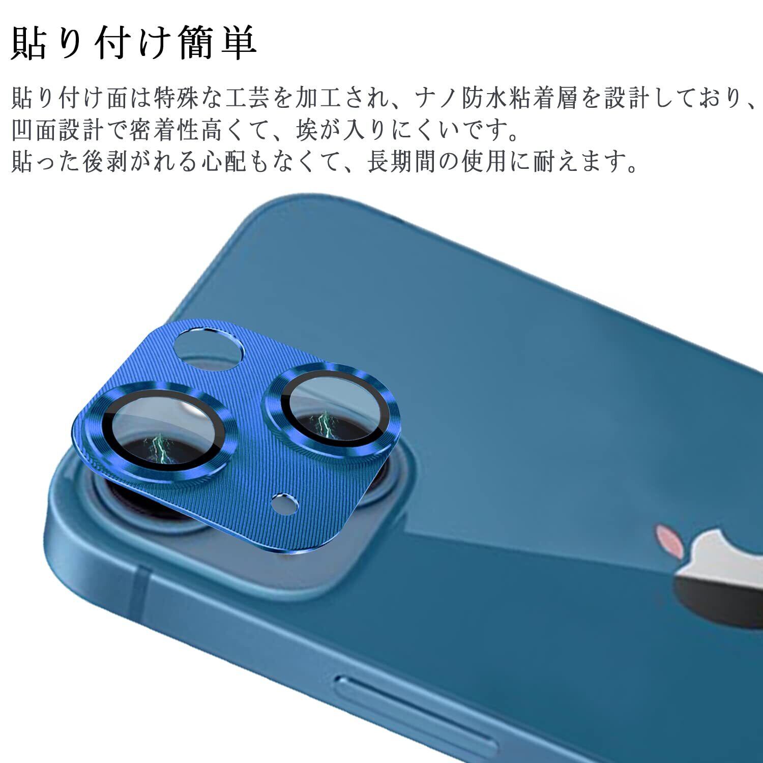 iPhone14 / 14 Plus レンズ 保護フィルム アルミ合金製 【2枚セット-高 品質】 アイフォン14 カメラフィルム アイフォン14 プラス レンズ 保護カバー カメラ保護フィルム 全面保護 傷防止 耐衝撃 露出オーバー防止 (ブルー(blue))