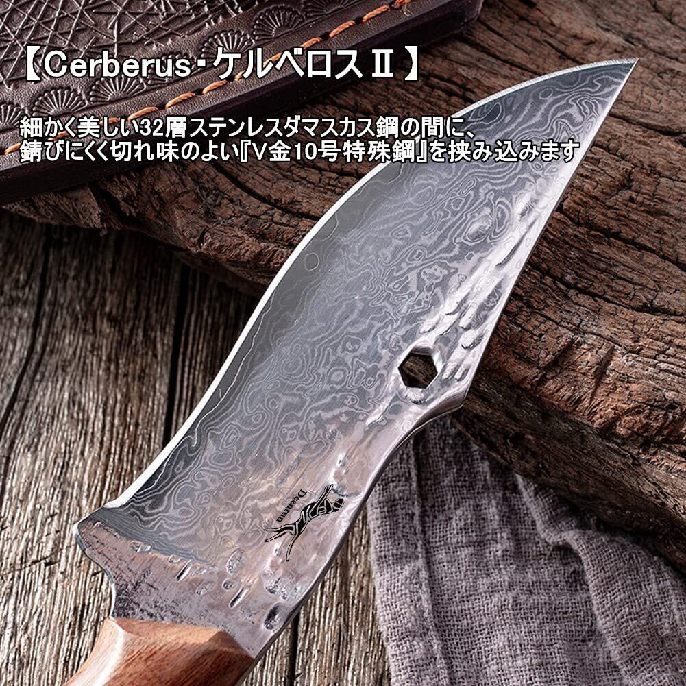Dcenrun ダマスカスナイフ 33層アウトドアナイフ 【Cerberus・ケルベロスⅡ】 VG10シースナイフ 釣りや貝類の採取、水辺でのキャンプなどに