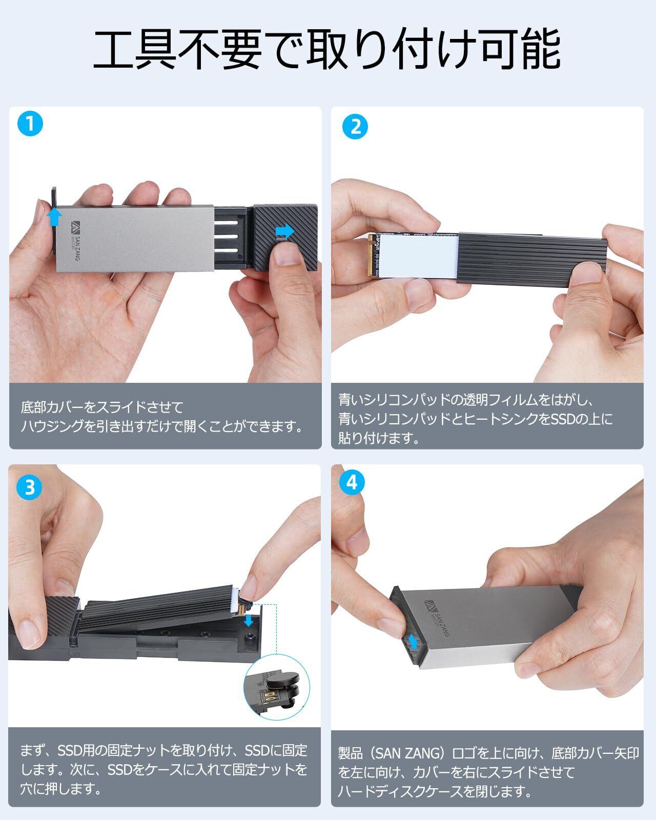 SAN ZANG MASTER M.2 SSD 外付けケース 工具不要 NVMe/SATA両対応 M2 SSD ケース USB3.2 Gen2接続 10Gbps高速転送 アルミケース SSD M.2 ケース UASP対応 2230/2242/2260/2280 M key/B+M key SSD対応