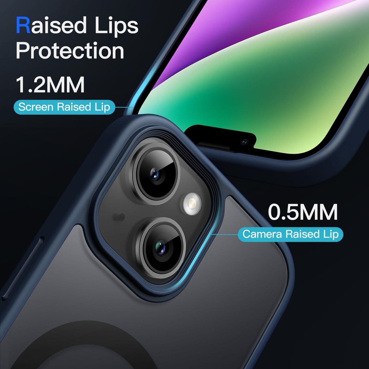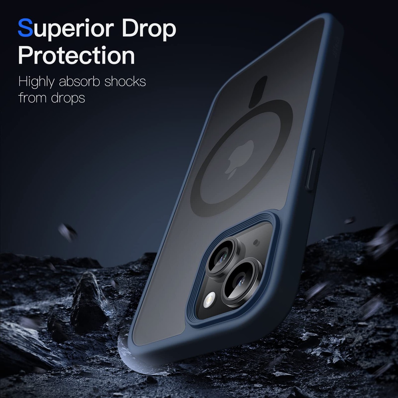 JETech iPhone 14 6.1インチ用 マグネット ケース MagSafeに対応 半透明のマット背面 薄型 耐衝撃 カバー (ストームブルー)