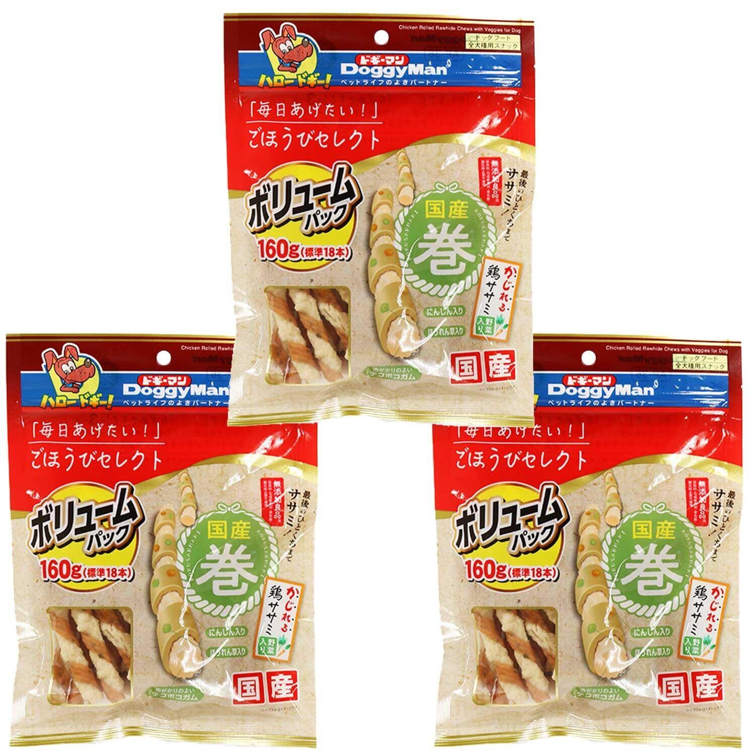 ドギーマン ごほうびセレクトVP 国産巻かじれる鶏ササミ野菜入り 160g(標準18本)×3袋