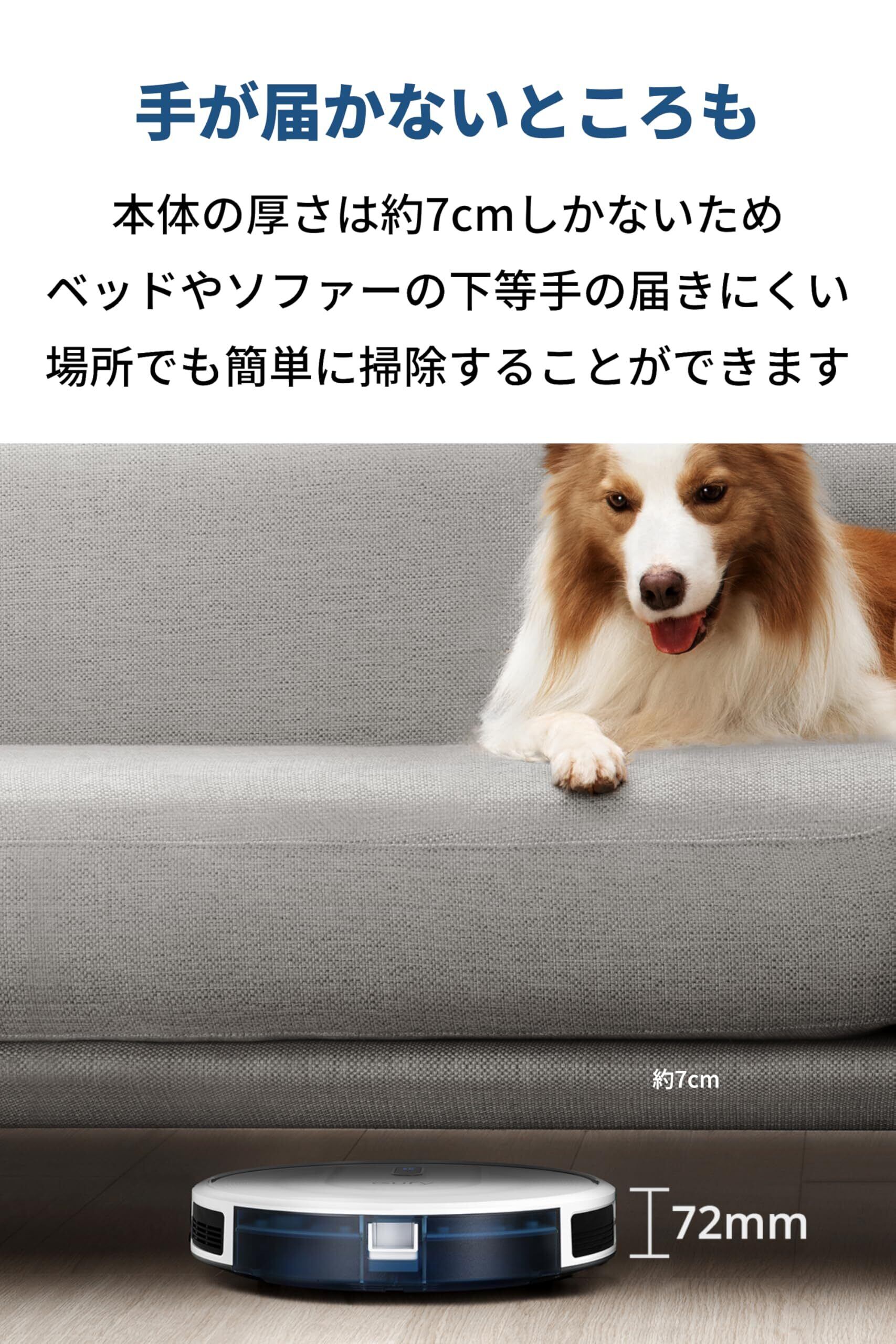 スリムでもパワフルな吸引力:厚さ約7cmの薄型設計ながら、パワフルな吸引力で部屋の隅々までしっかりと掃除します。