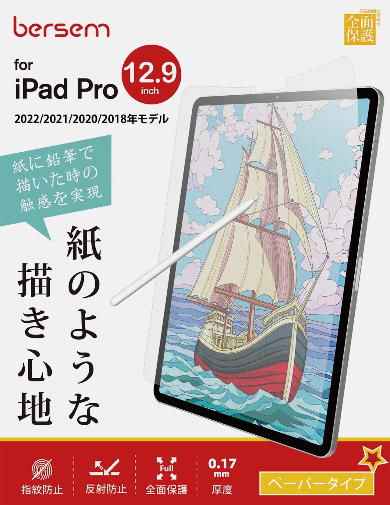 BERSEM【2枚セット】iPad Pro 12.9インチ 第6/5/4/3世代(2022/2021/2020/2018)用 ペーパーライクフィルム【紙のような描き心地】【反射防止アンチグレア】【指紋防止】【気泡防止】【Apple Pencil対応】保護フィルム