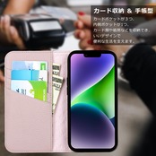【収納機能、横置きスタンド機能】iPhone13ケース内側に実用性のカード入れポケット×4、内側ポケット×1、カード類、現金、名刺、免許証入れなどを収納でき、通勤も通学にも楽々タイプです。マグネットが内蔵されているので、ベルトがなくてもフタがぴったり閉まります。横置きスタンド機能が付きまして、好きな角度を調節できて、手放しでも動画視聴や読書に楽しめる。