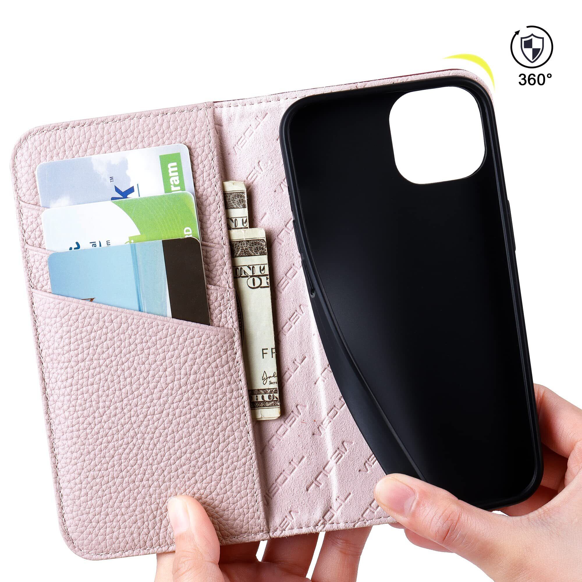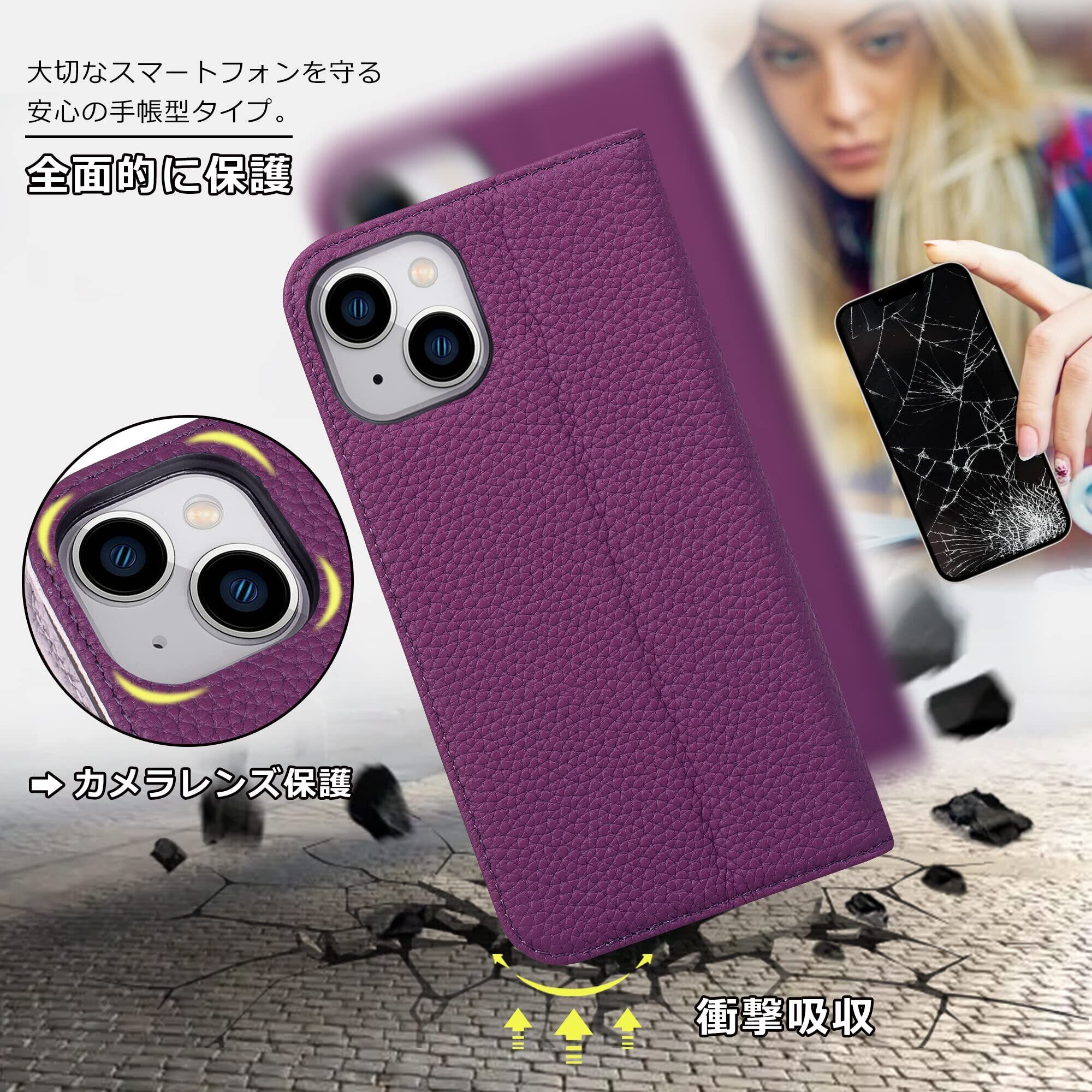 VISOUL iPhone13 ケース 手帳型 本革 アイフォン13 本革ケース レザー スマホケース iPhone 13 手帳ケース カード収納 携帯ケース 全面保護 マグネット 横置きスタンド iphone 13 対応 6.1インチ シュリンクレザー iPhone 13 パープル ピック