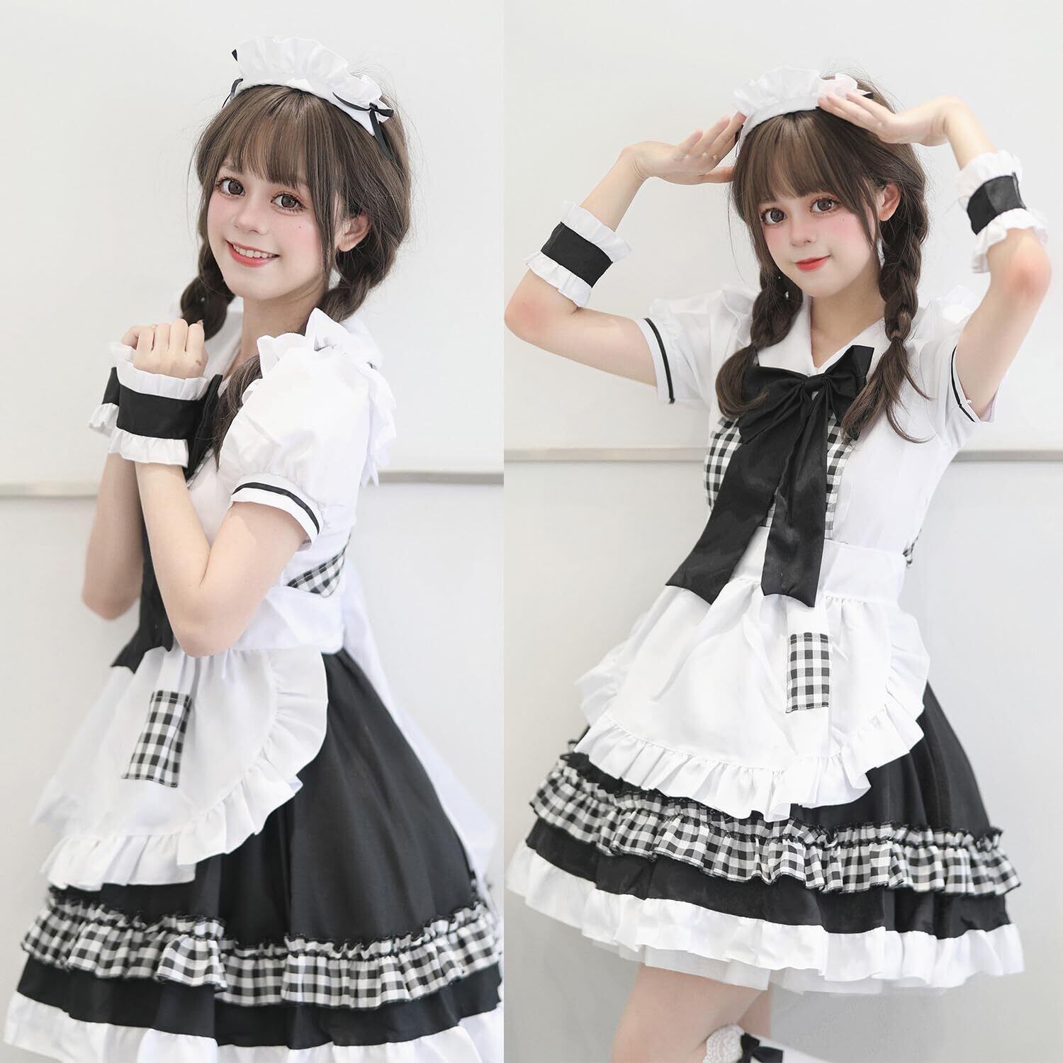 [FULINE] メイド服 かわいい メイド服 コスプレ 半袖 ロリータ ワンピース ドレス 大きい 蝶結ぶ メイドカフェー メイド 仮装 レディース ゴスロリ コスチューム